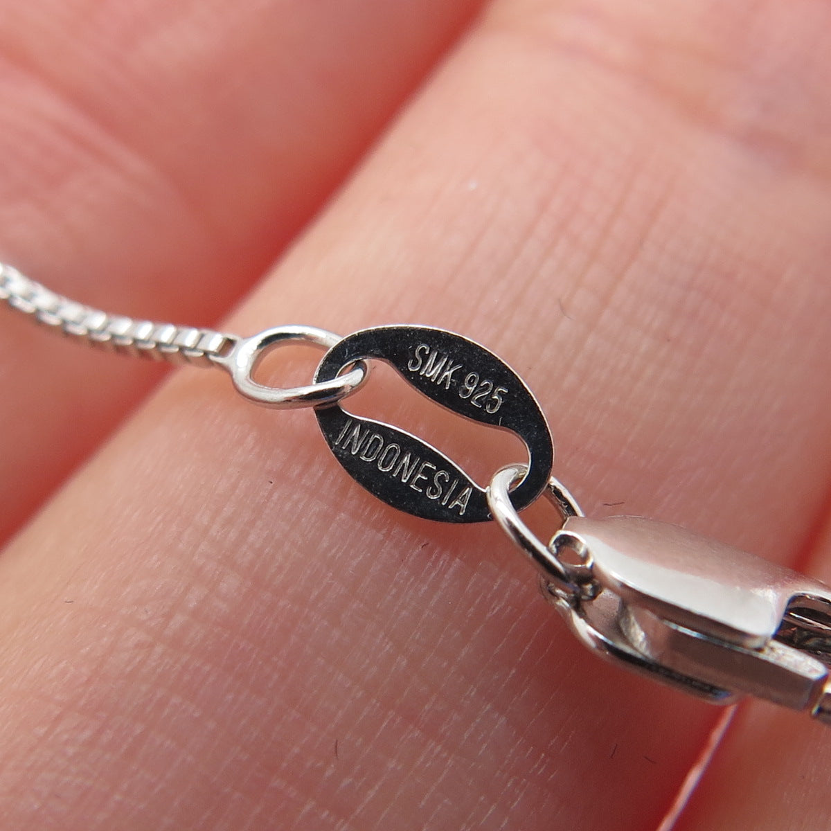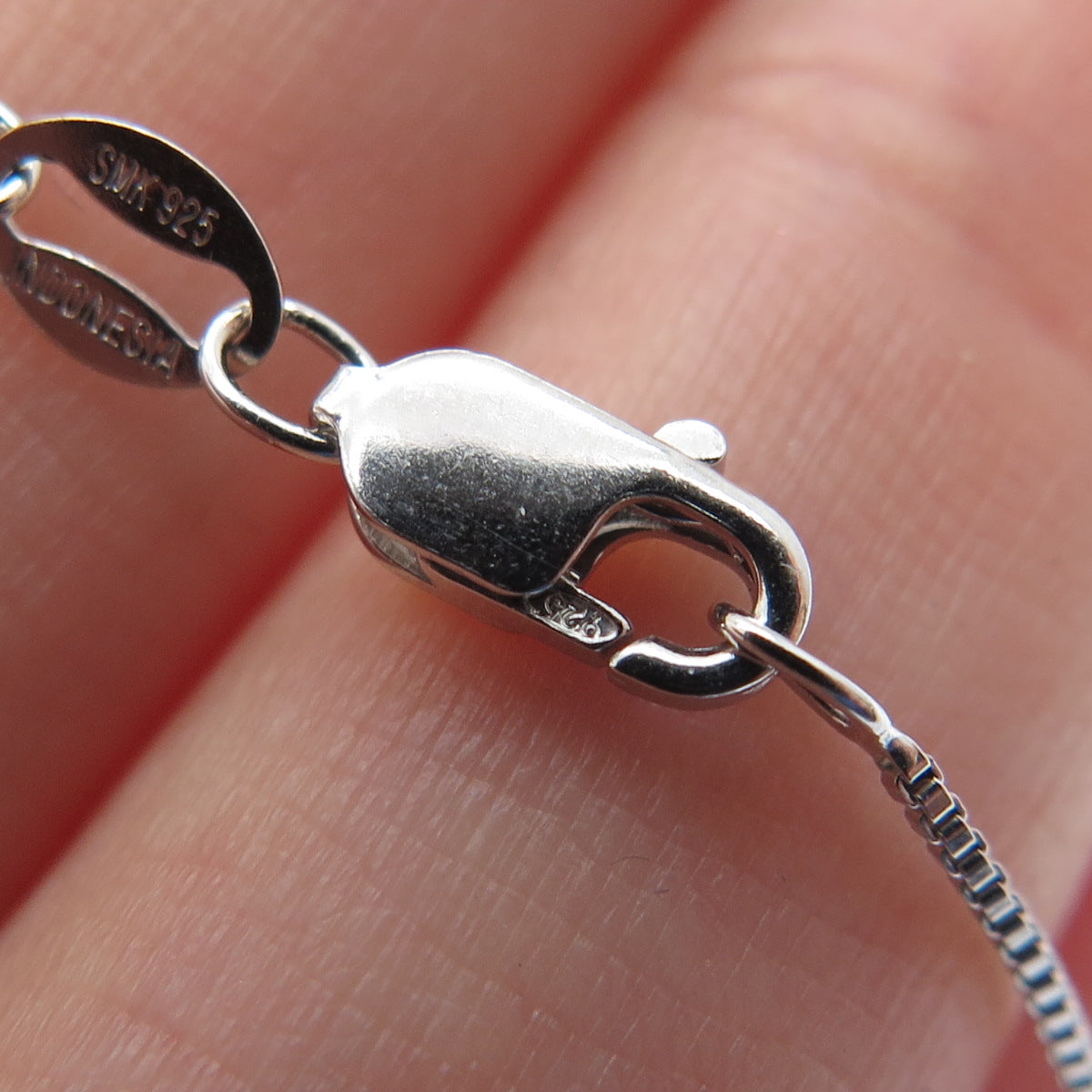 925 Sterling Silver Real Rose Quartz & C Z Box Chain Necklace 18"