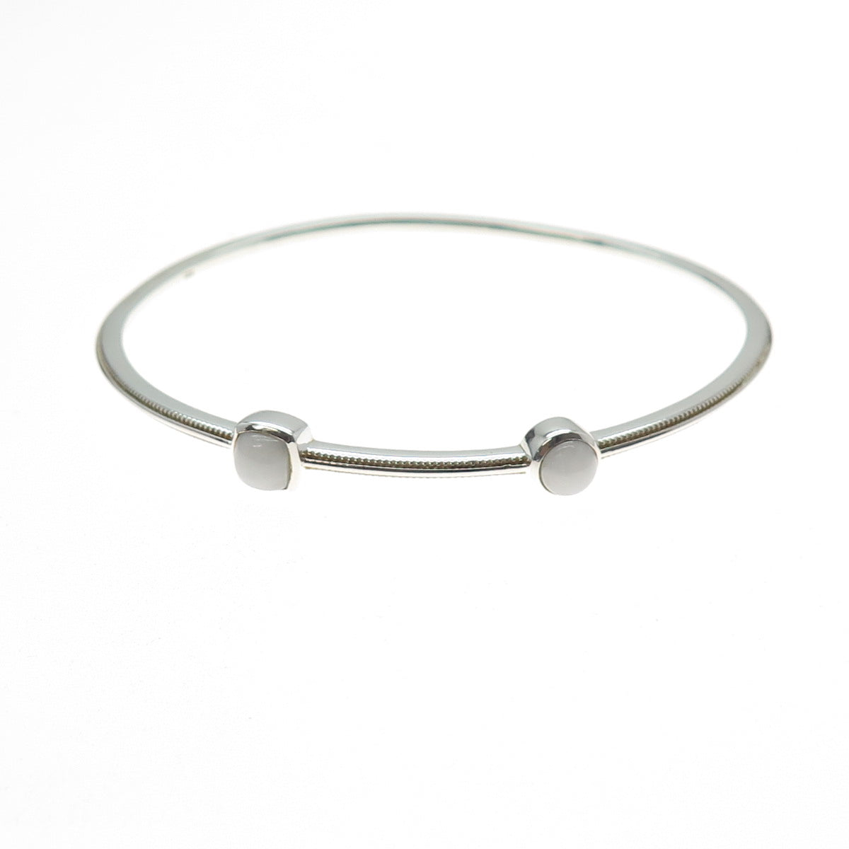 925 Sterling Silver Real Round & Cushion-Cut White Jade Bangle Bracelet 7.5"