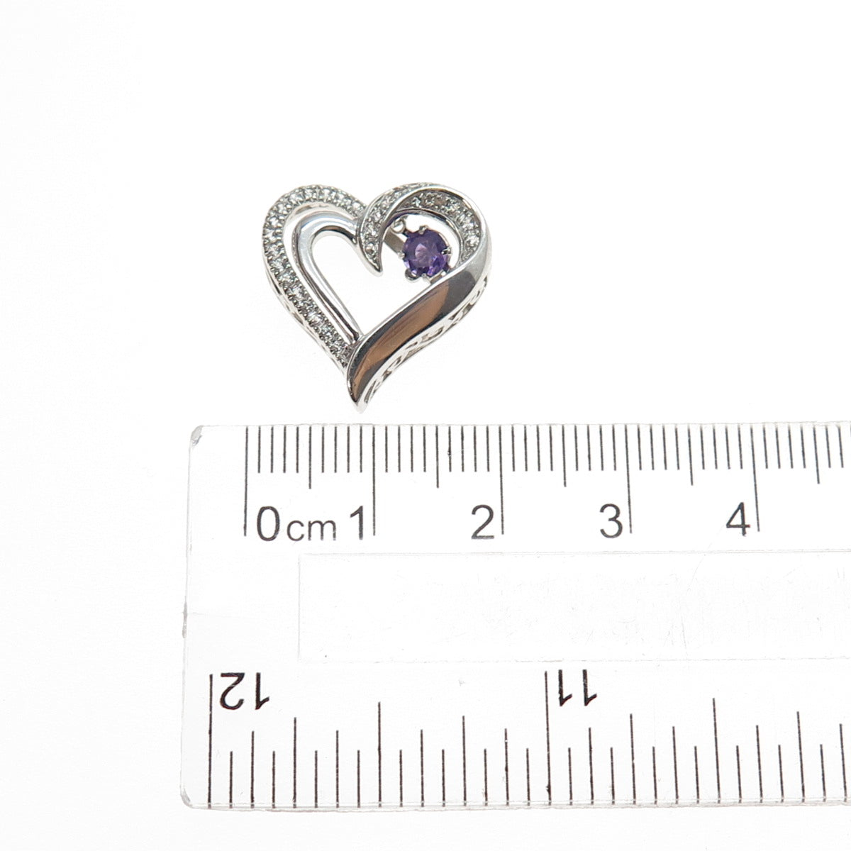 925 Sterling Silver Real Round-Cut Amethyst White Topaz Heart Mini Slide Pendant