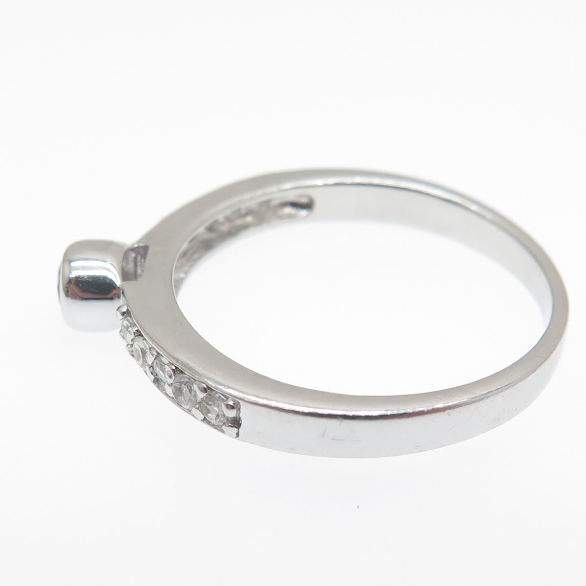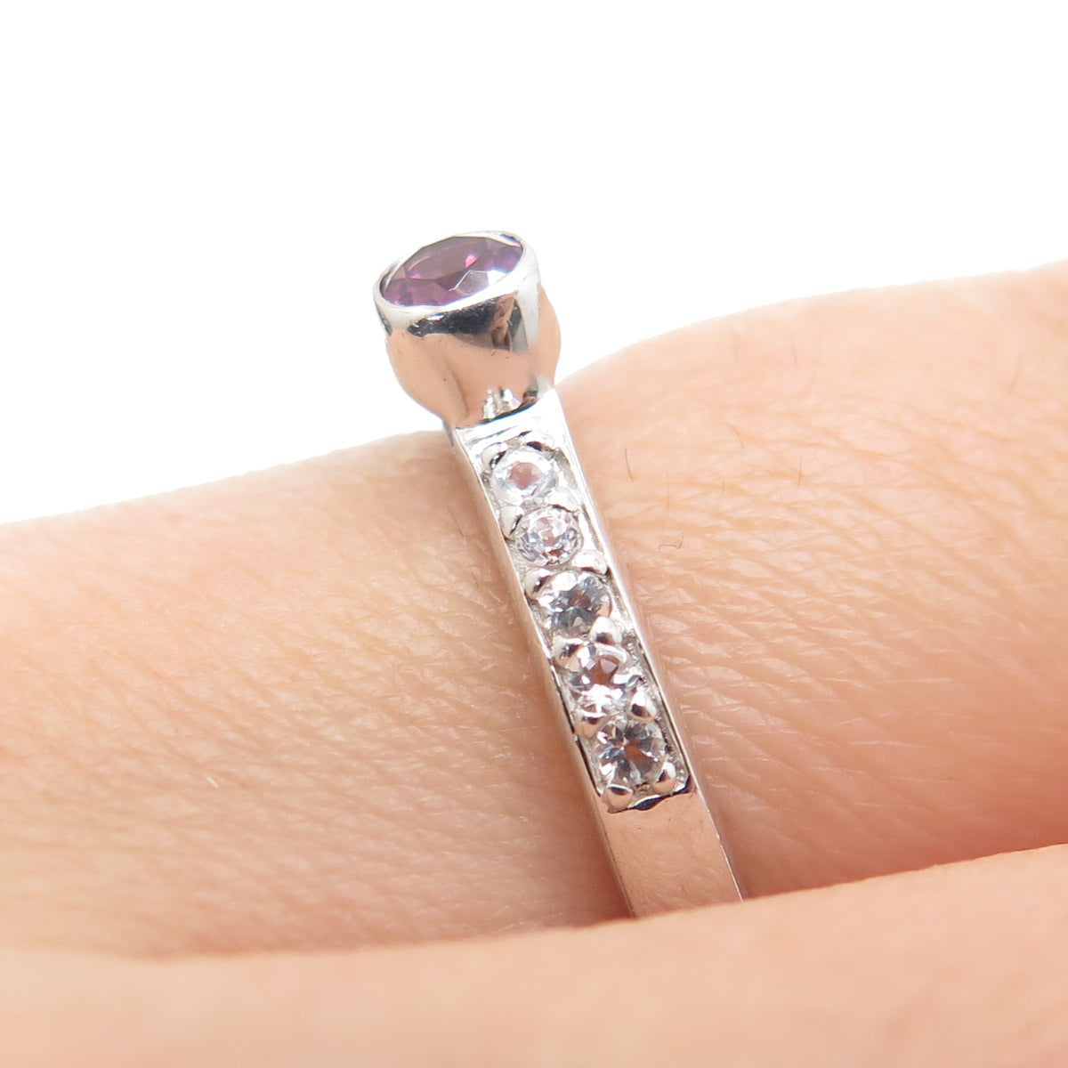 925 Sterling Silver Real Round-Cut Amethyst & White Topaz Ring Size 7