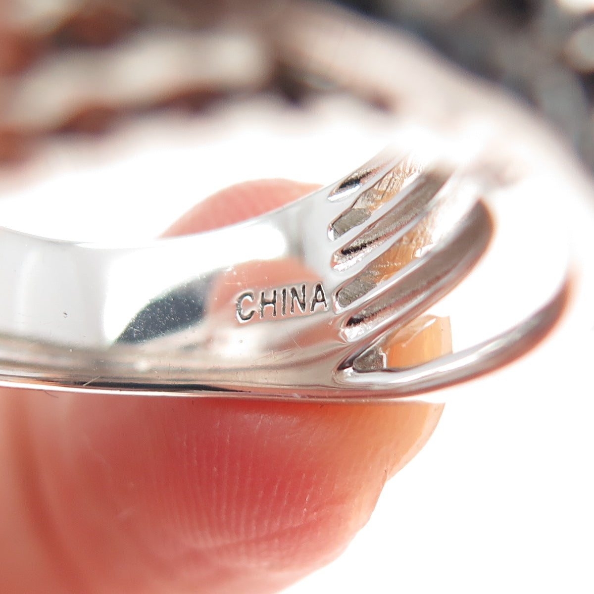 925 Sterling Silver Real Round-Cut Black Diamond Crisscross Ring Size 6.25