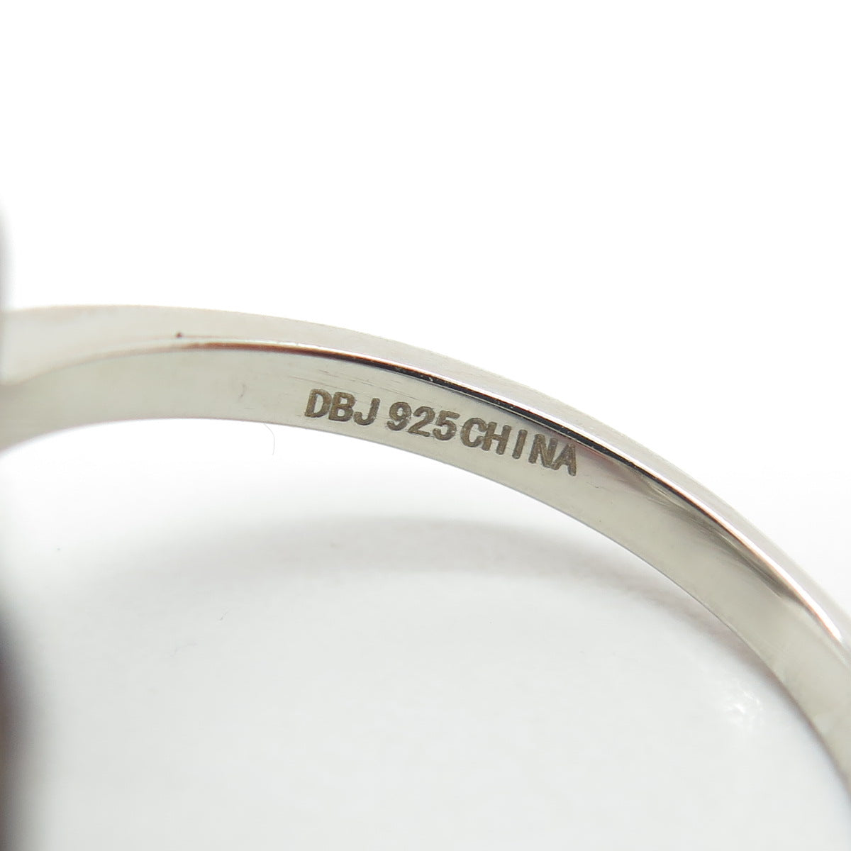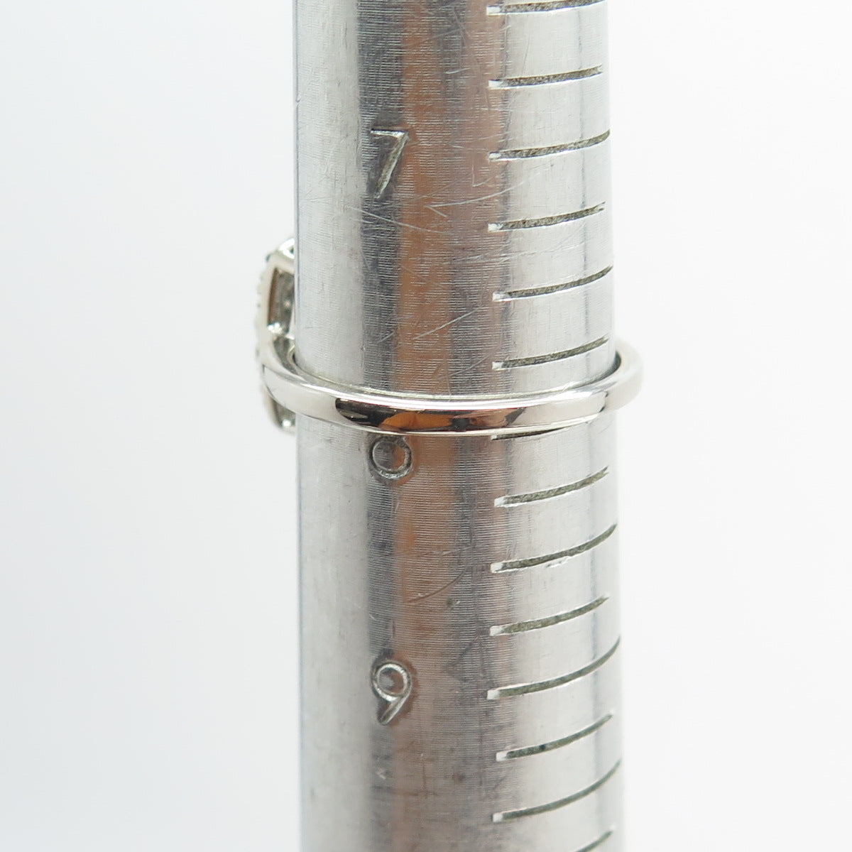 925 Sterling Silver Real Round-Cut Black Diamond Lattice Pattern Ring Size 8