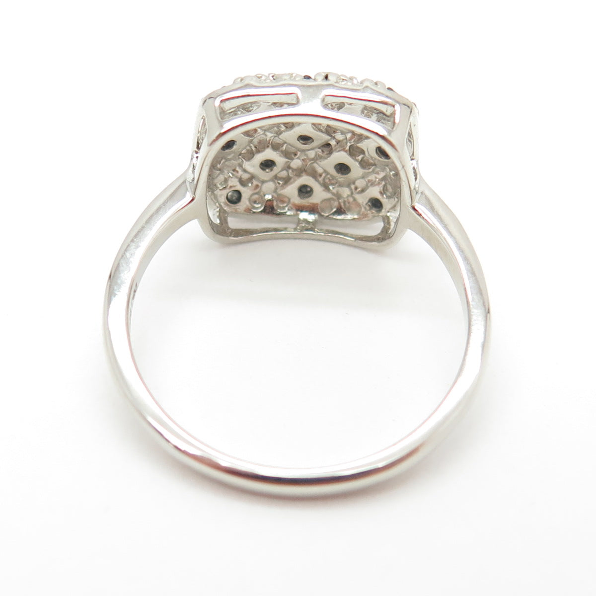 925 Sterling Silver Real Round-Cut Black Diamond Lattice Pattern Ring Size 9