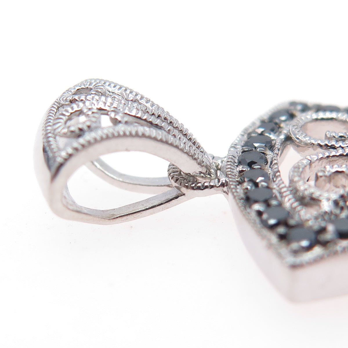 925 Sterling Silver Real Round-Cut Black Diamond Ornate Cross Pendant