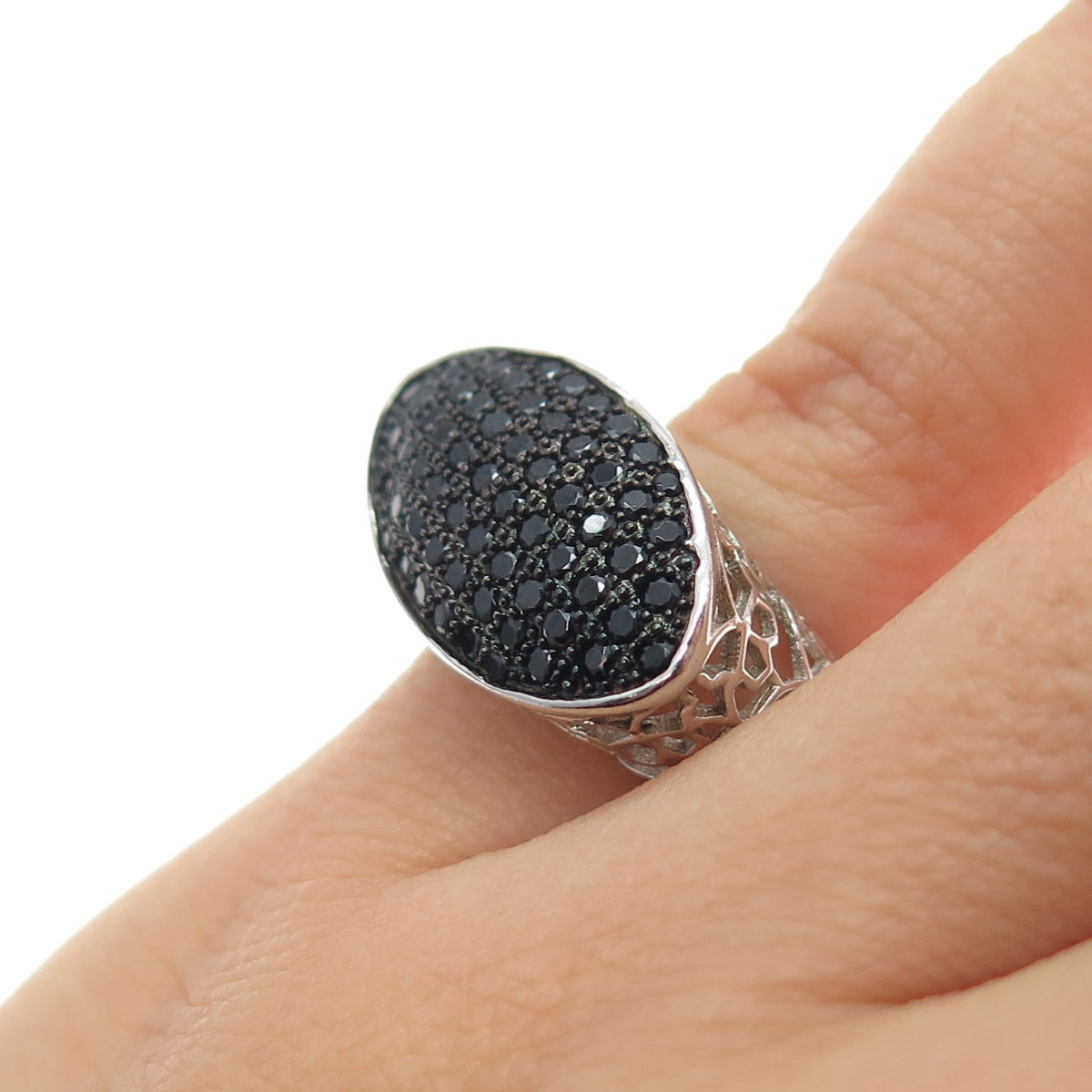 925 Sterling Silver Real Round-Cut Black Spinel Butterfly Ring Size 5