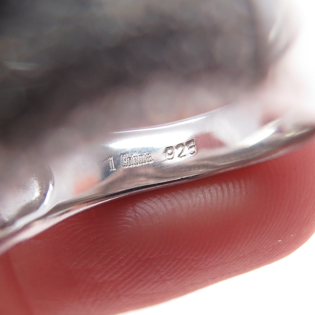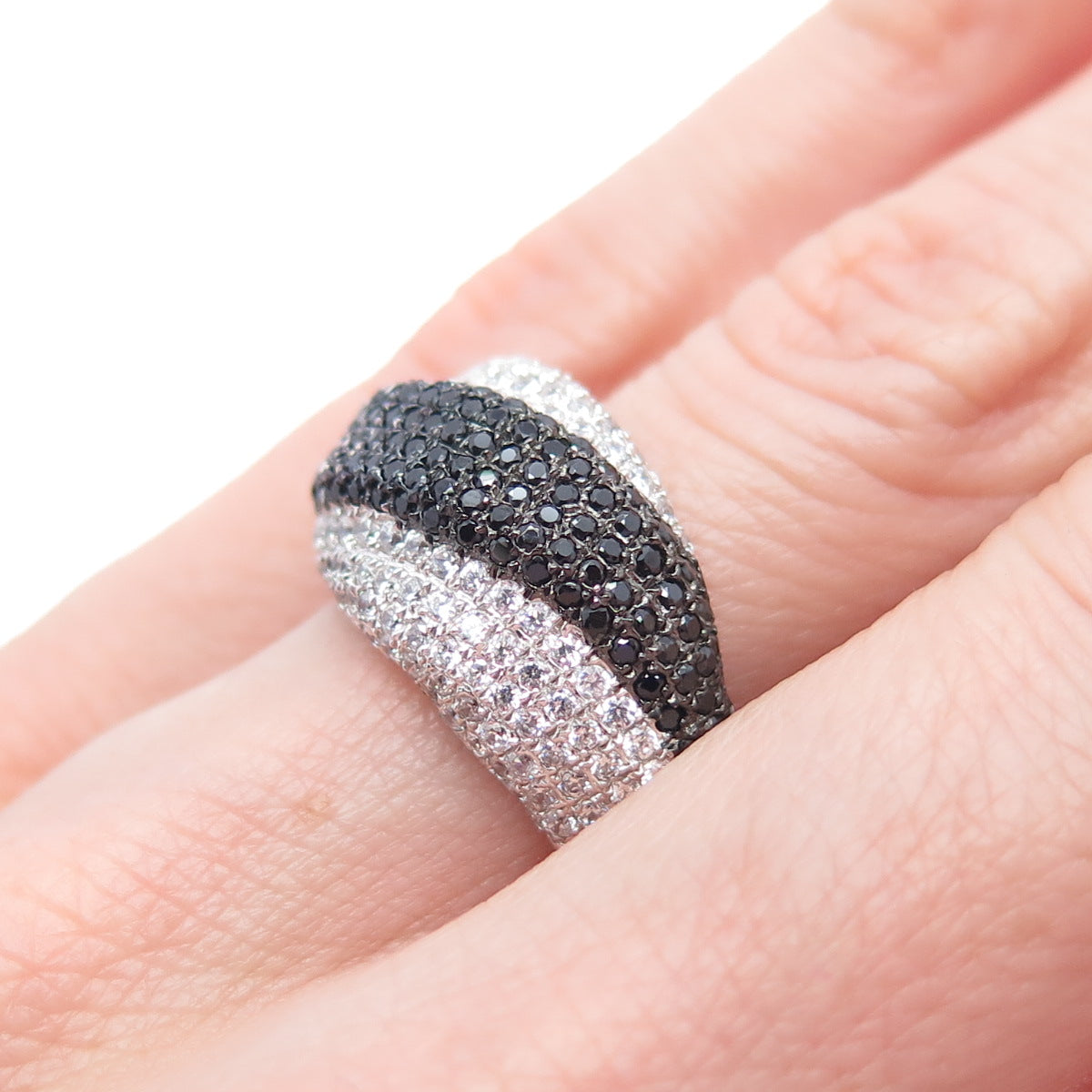 925 Sterling Silver Real Round-Cut Black Spinel & C Z Wavy Ring Size 6.5
