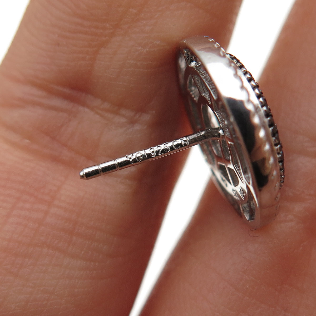 925 Sterling Silver Real Round-Cut Black Spinel Earrings