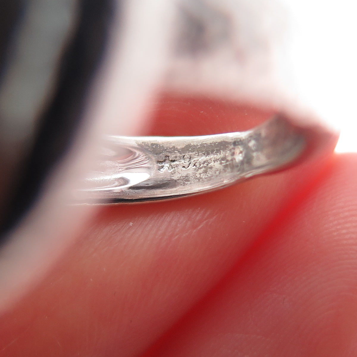 925 Sterling Silver Real Round-Cut Black Spinel Hammered Ring Size 4
