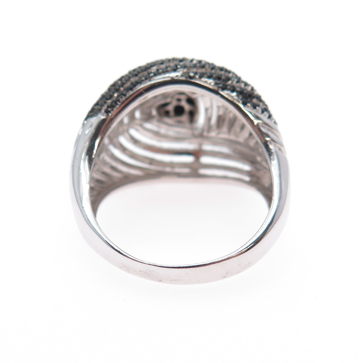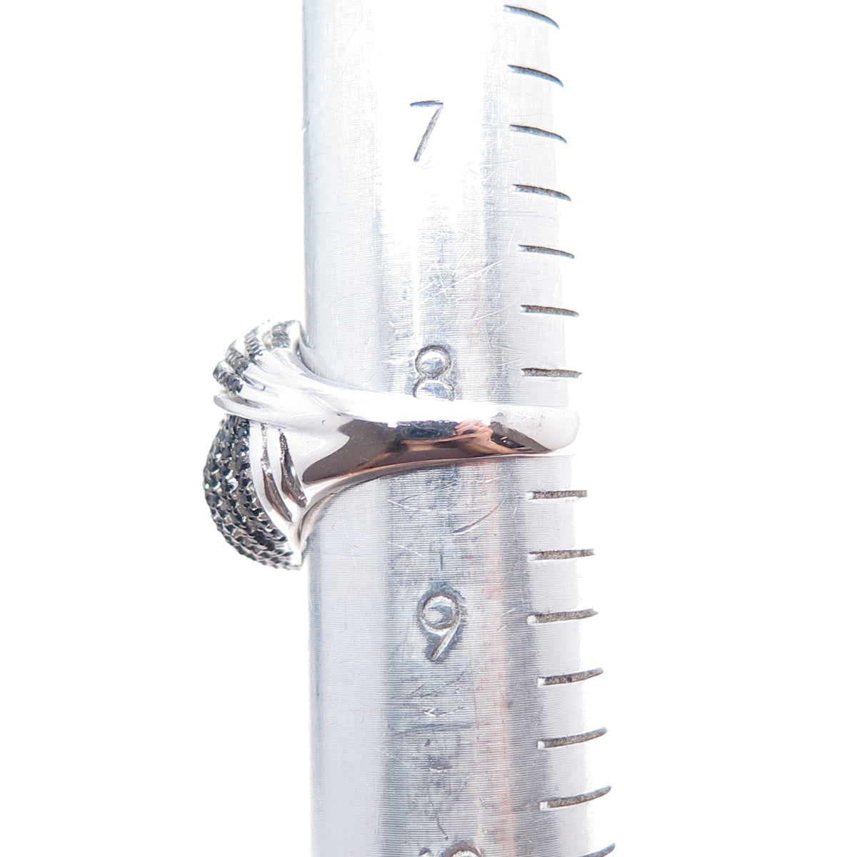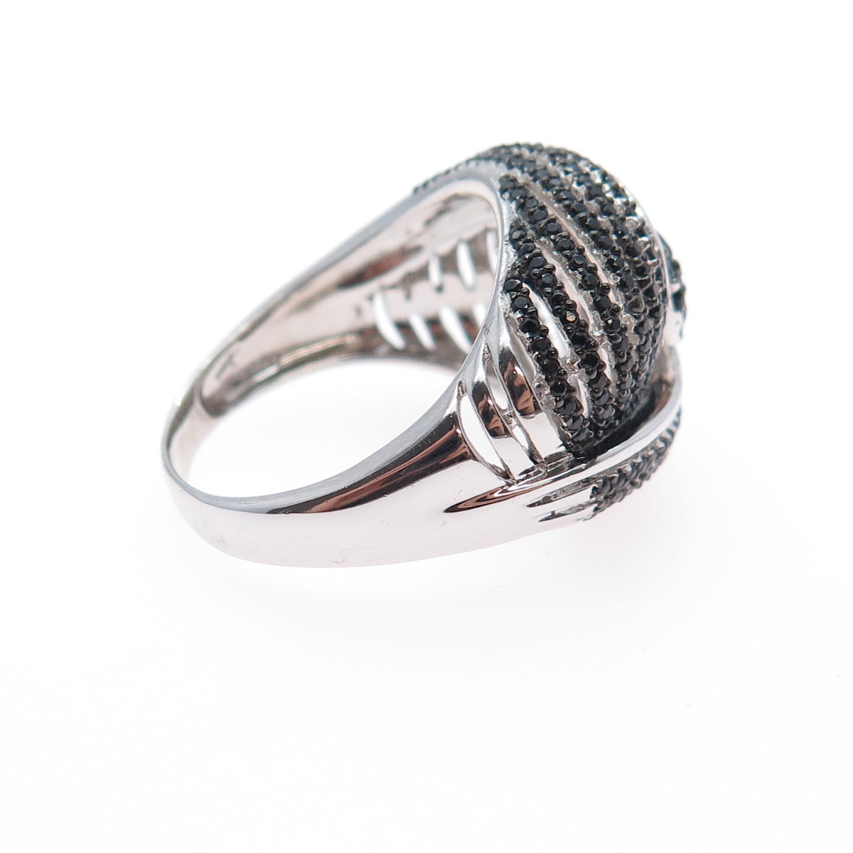 925 Sterling Silver Real Round-Cut Black Spinel Heart Dome Ring Size 8.25