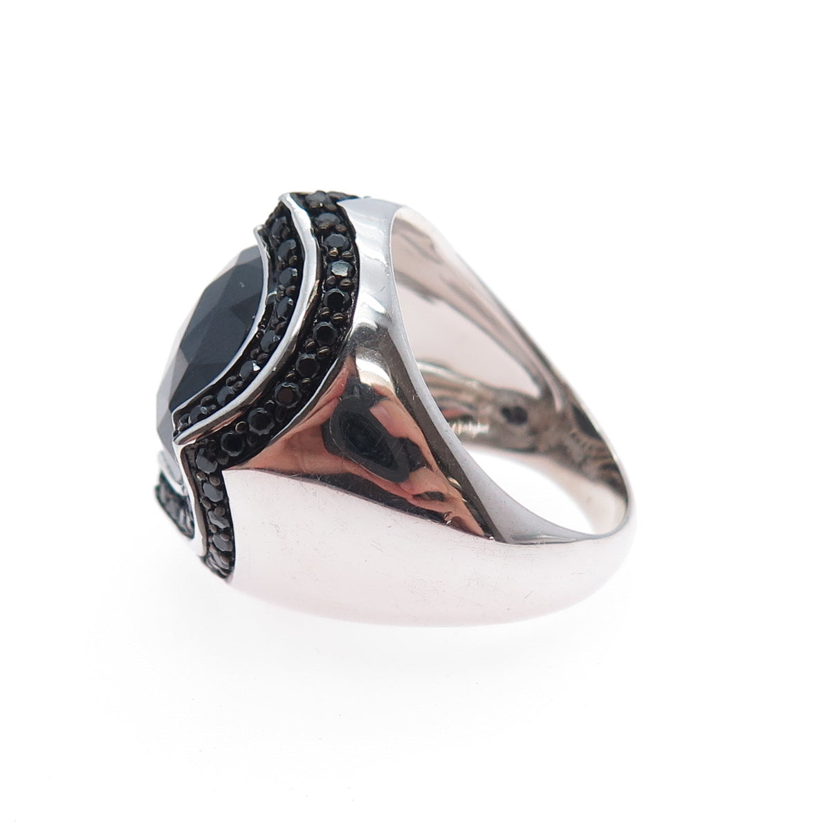 925 Sterling Silver Real Round-Cut Black Spinel Modernist Ring Size 7.5