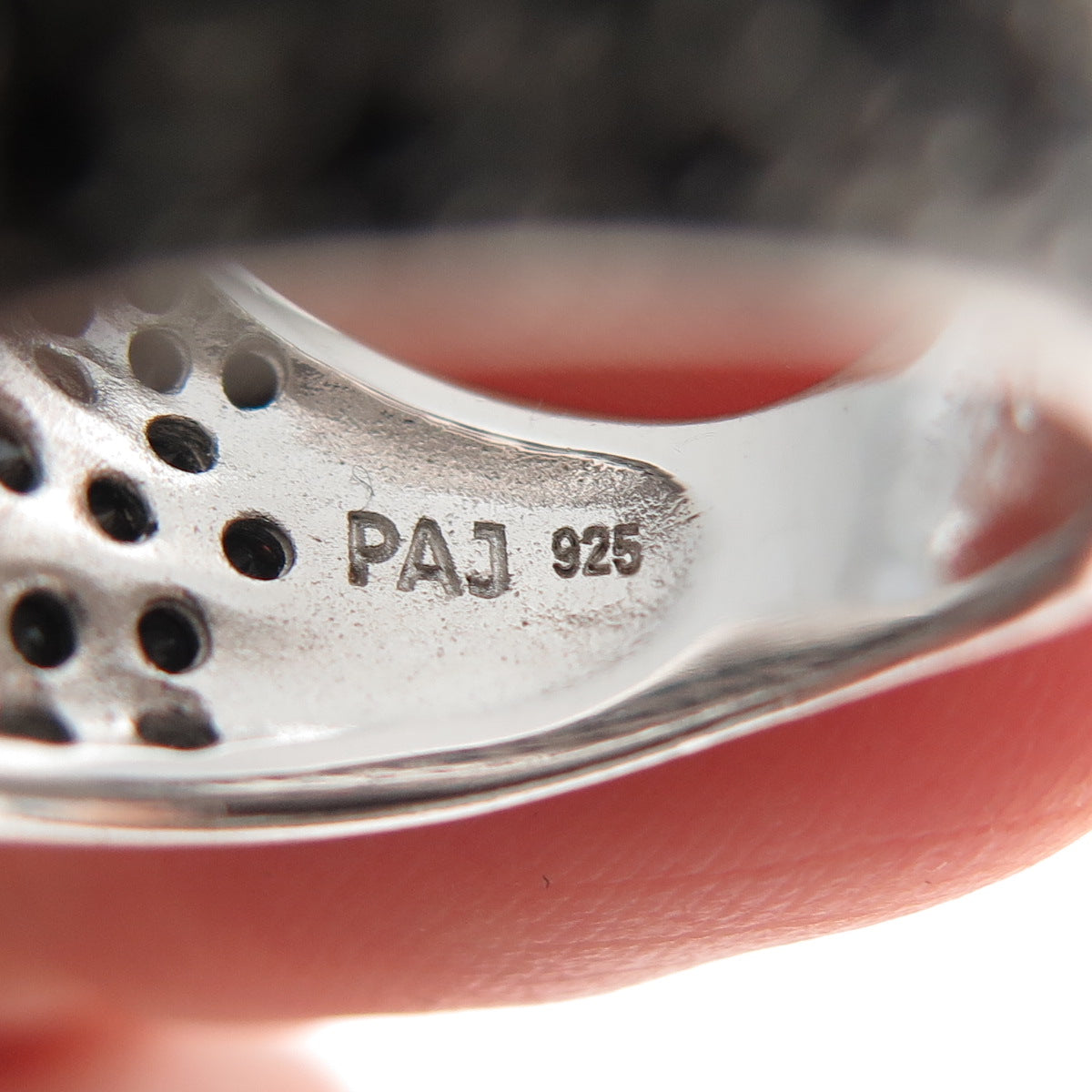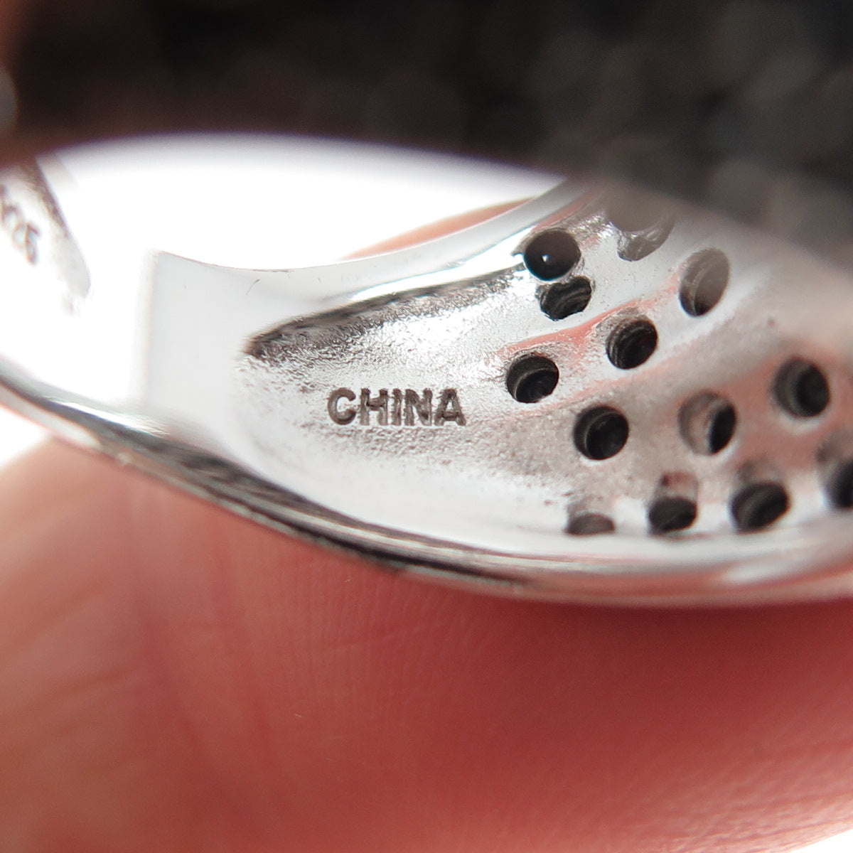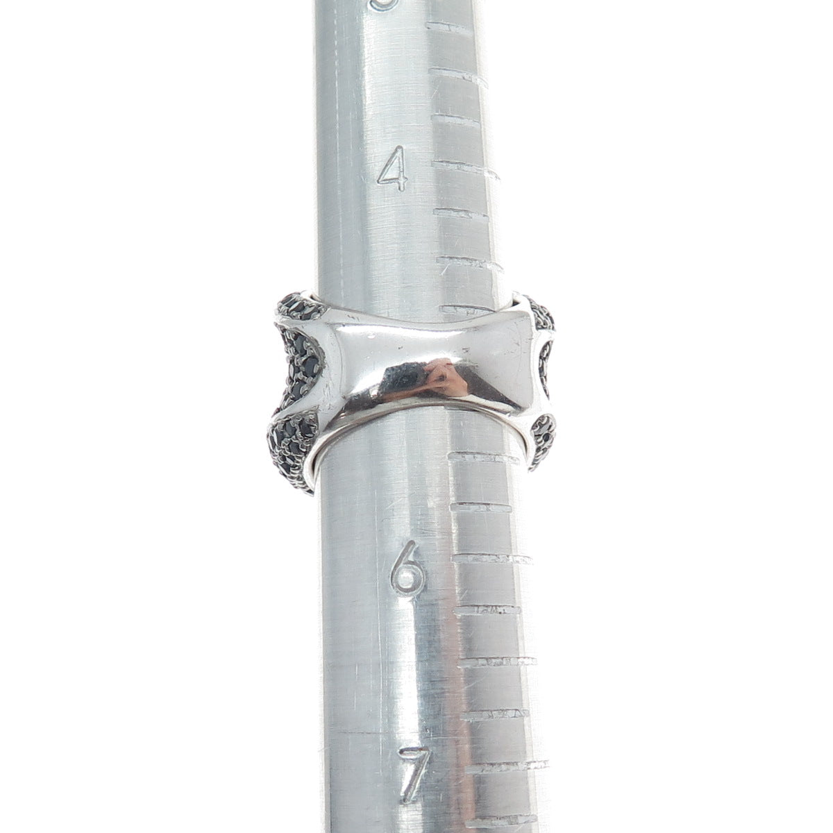925 Sterling Silver Real Round-Cut Black Spinel Modernist Wavy Ring Size 5.25
