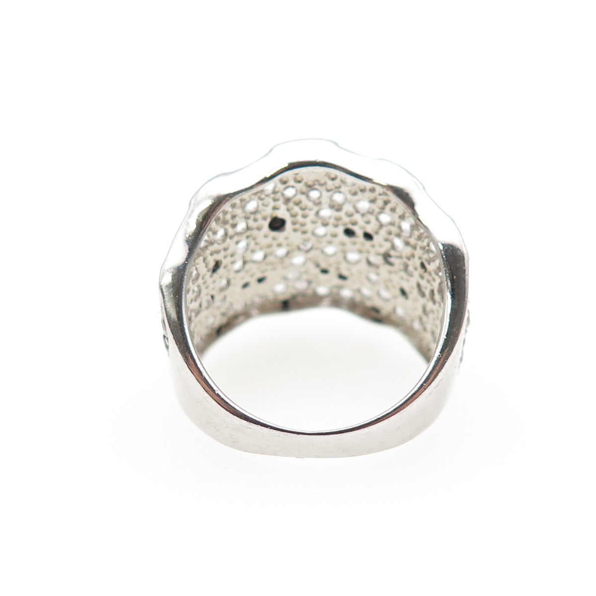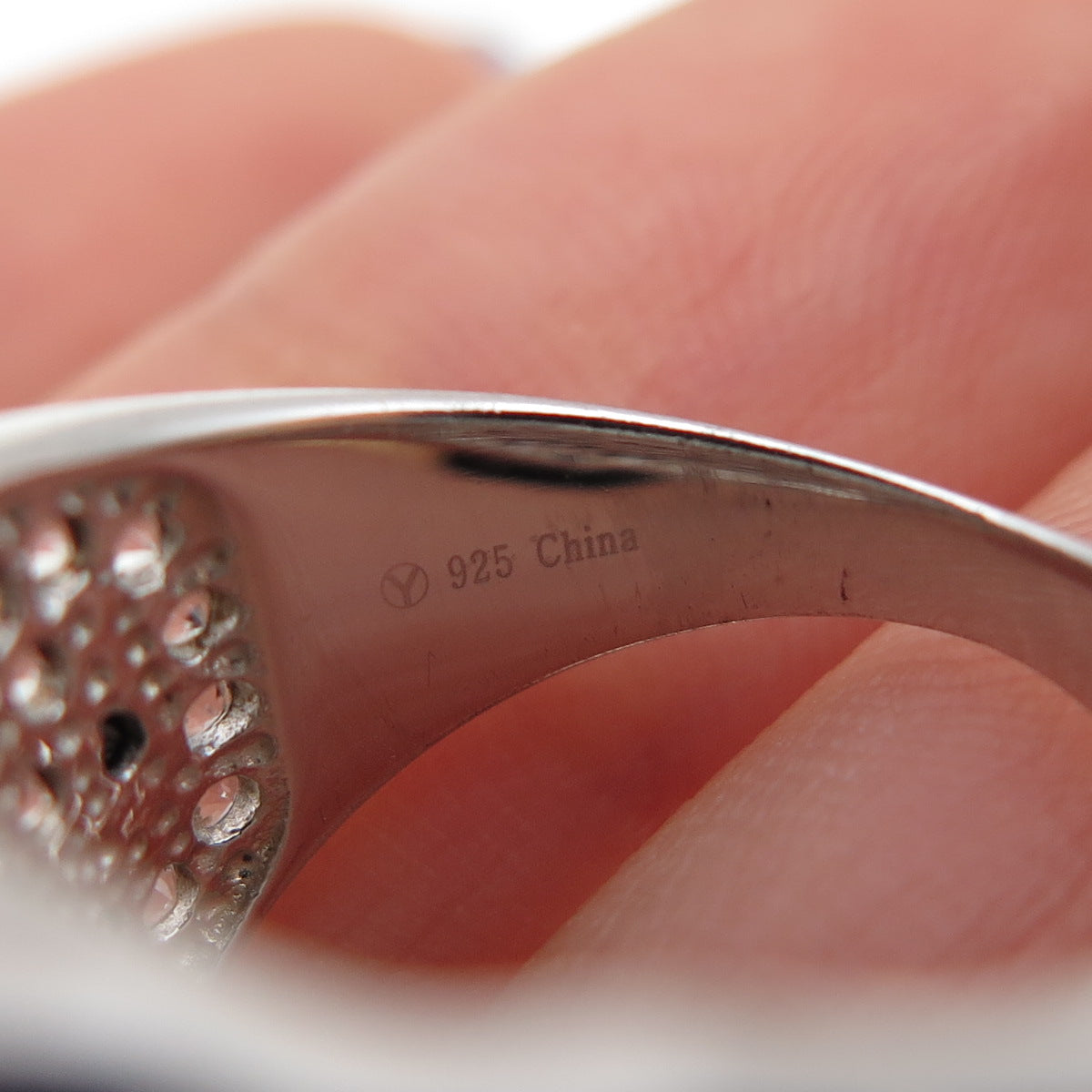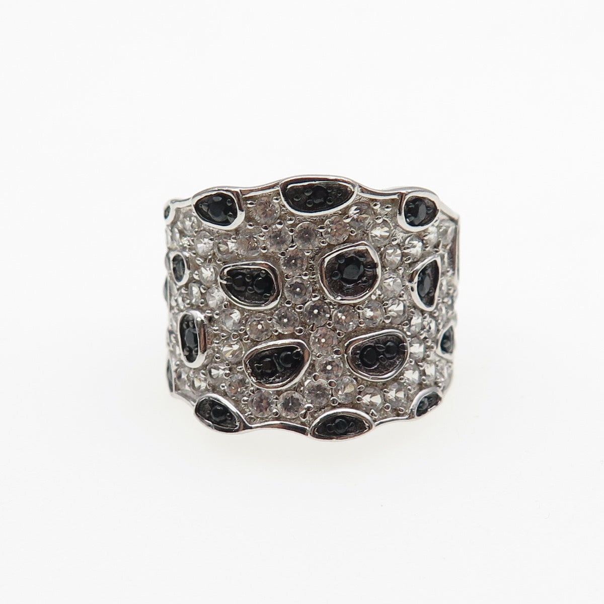 925 Sterling Silver Real Round-Cut Black Spinel & White Topaz Ring Size 6.25