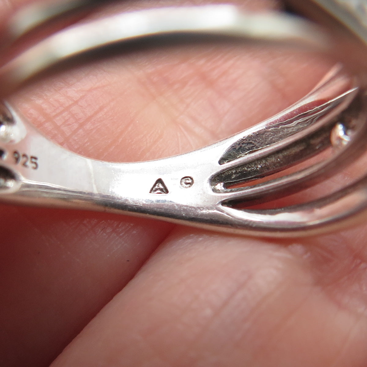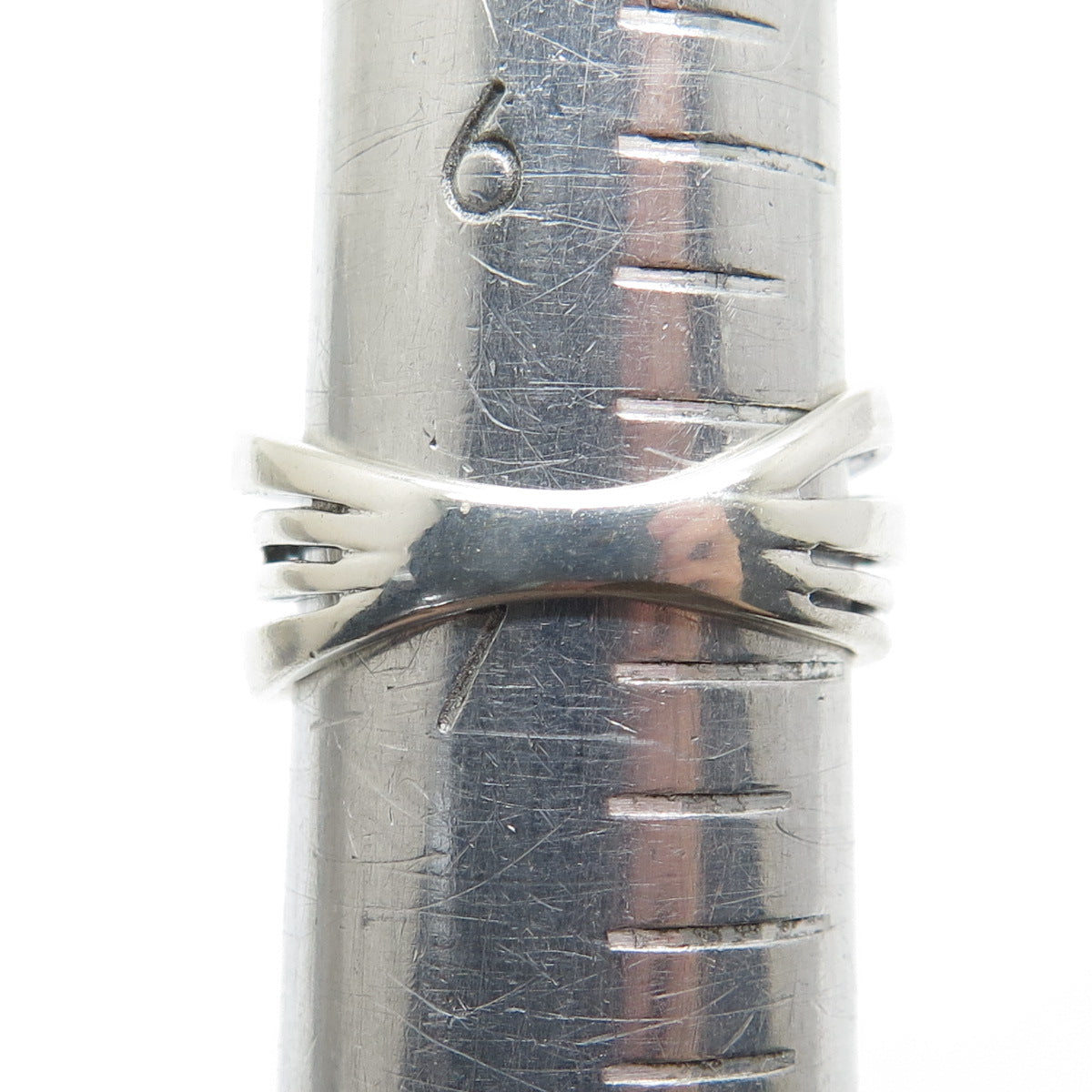 925 Sterling Silver Real Round-Cut Black & White Diamond Crisscross Ring Size 7