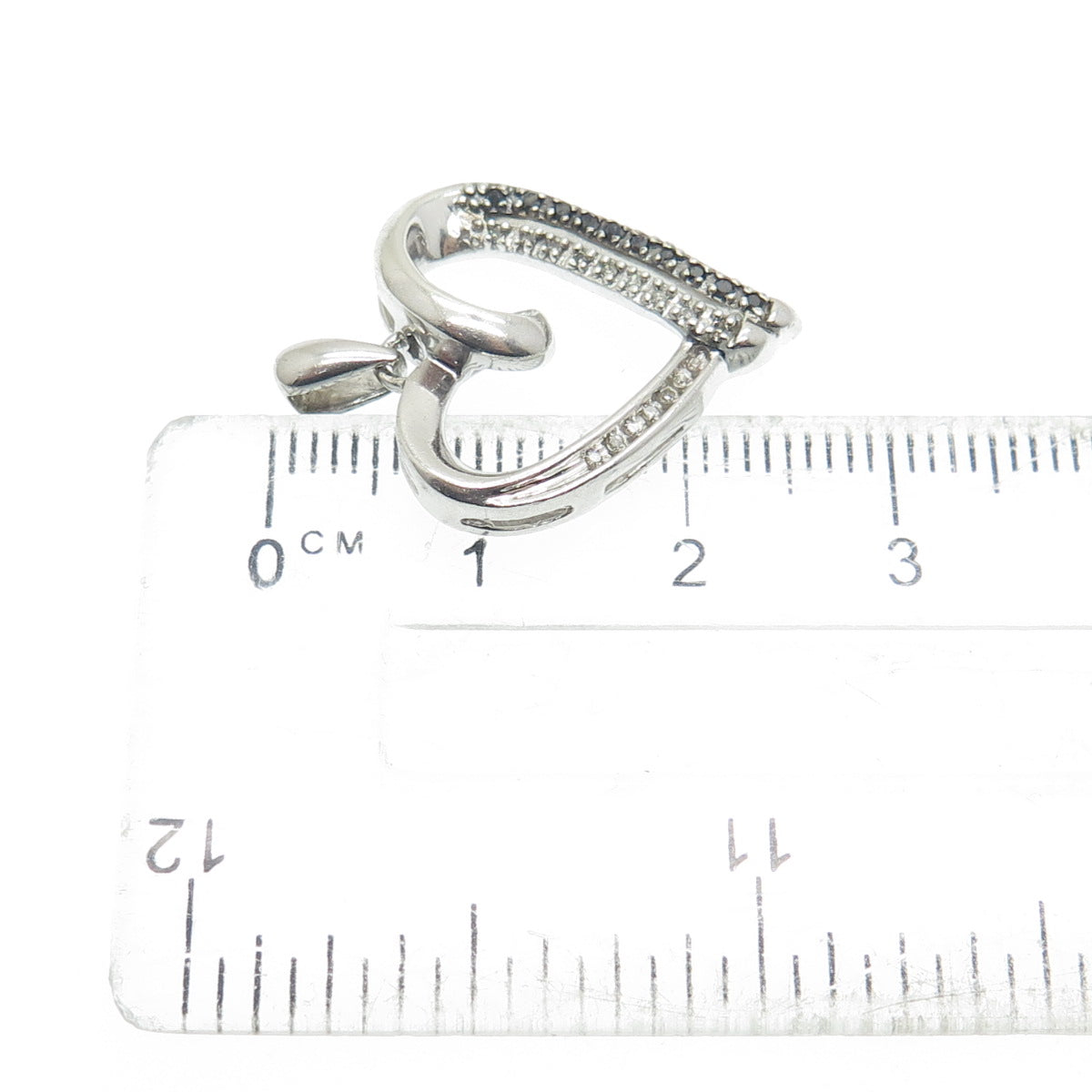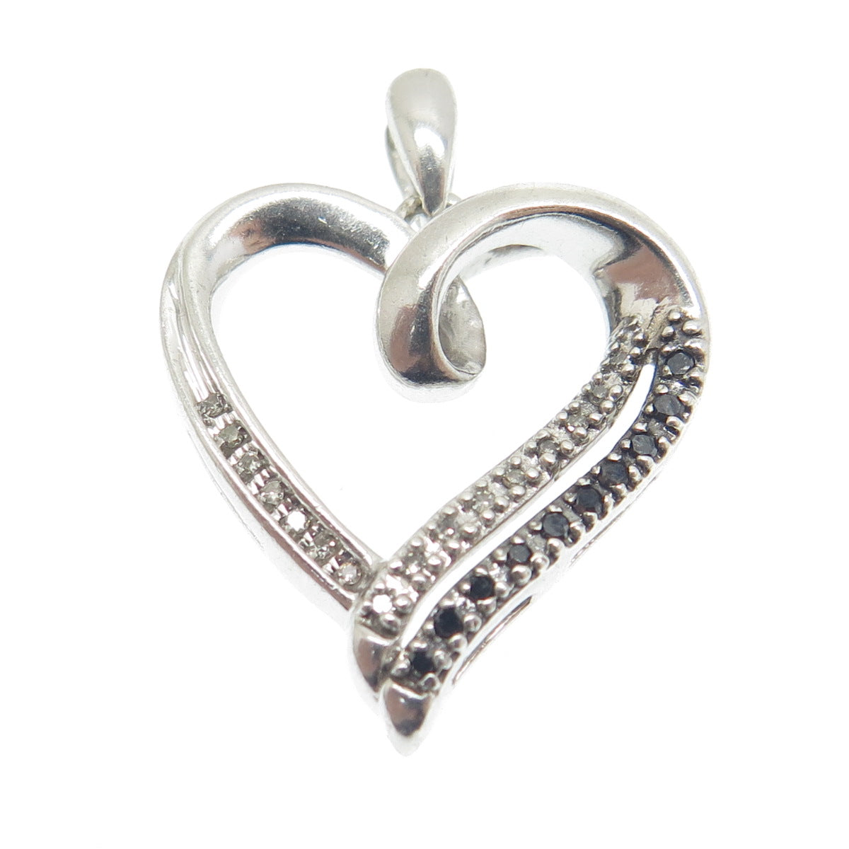 925 Sterling Silver Real Round-Cut Black & White Diamond Heart Charm Pendant