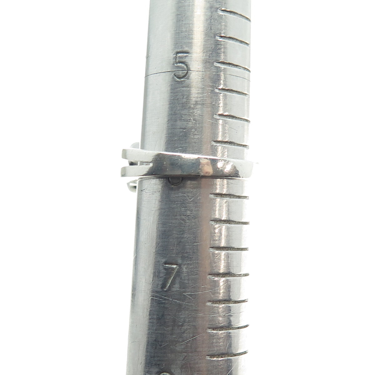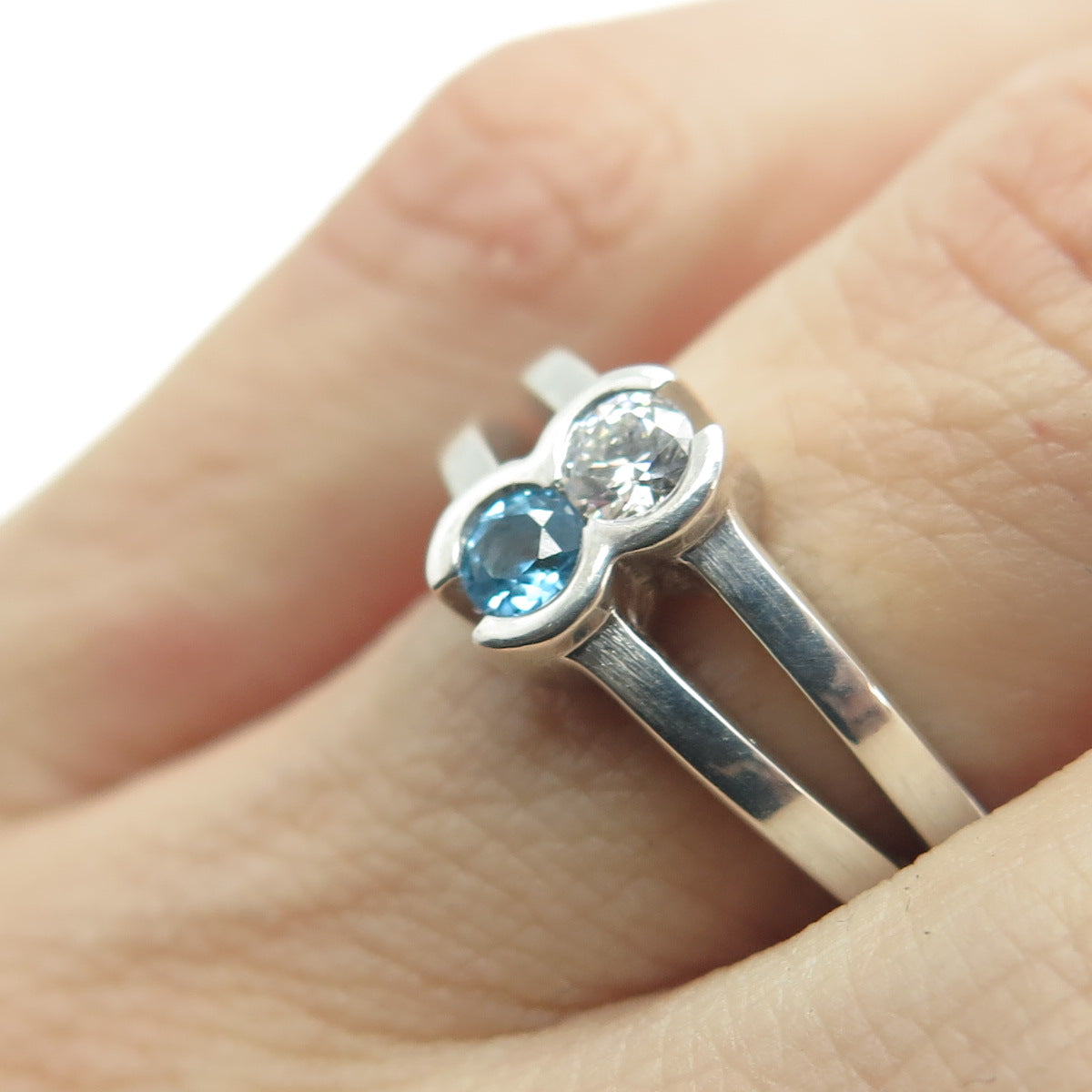 925 Sterling Silver Real Round-Cut Blue Topaz & C Z Modernist Ring Size 6
