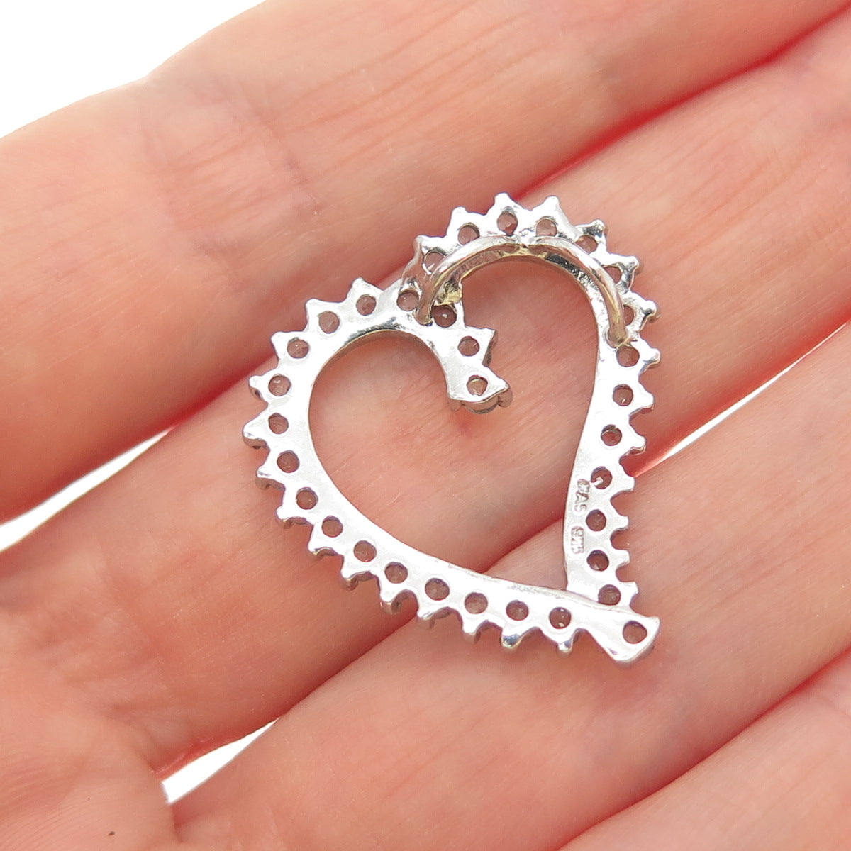 925 Sterling Silver Real Round-Cut Blue Topaz Heart Slide Charm Pendant