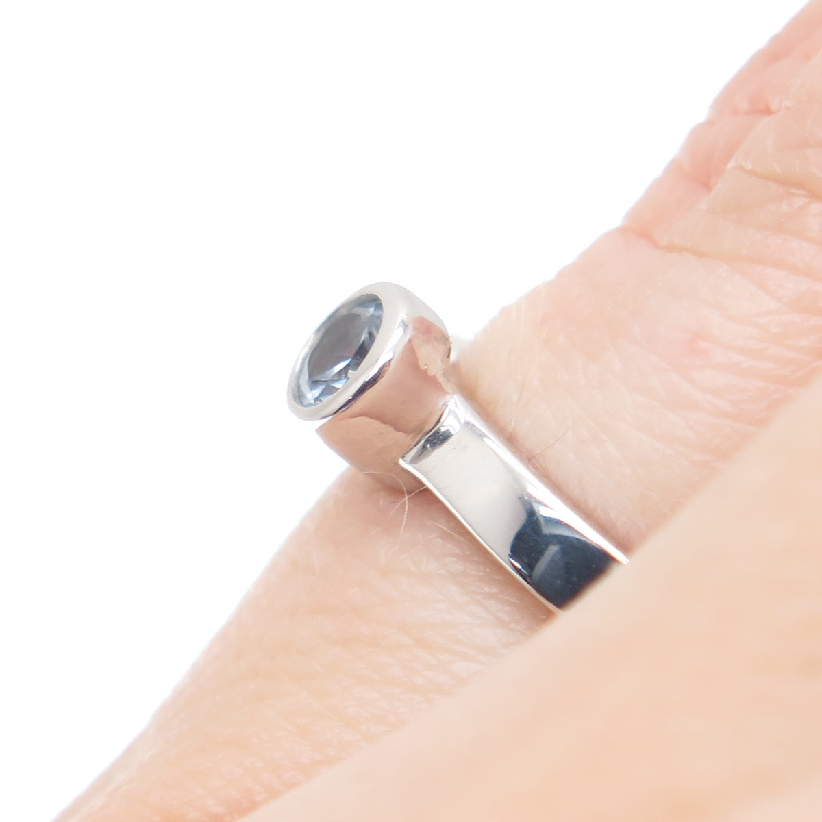 925 Sterling Silver Real Round-Cut Blue Topaz Ring Size 4.75