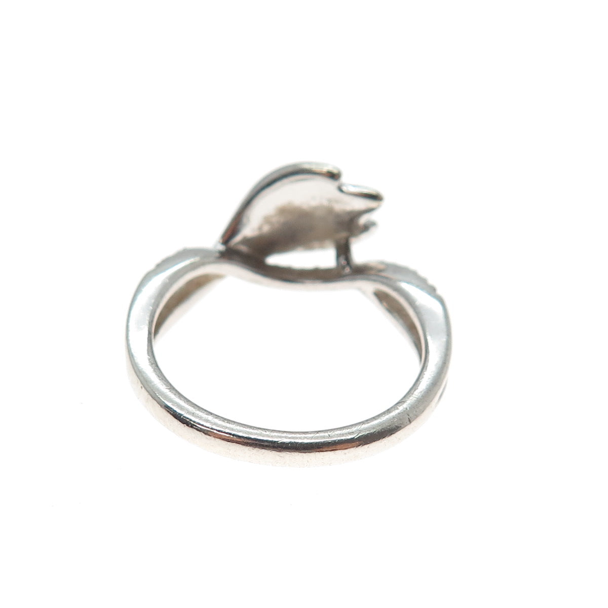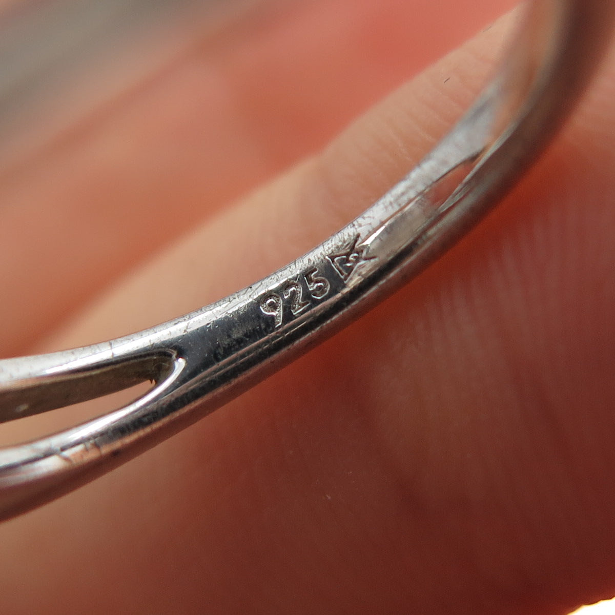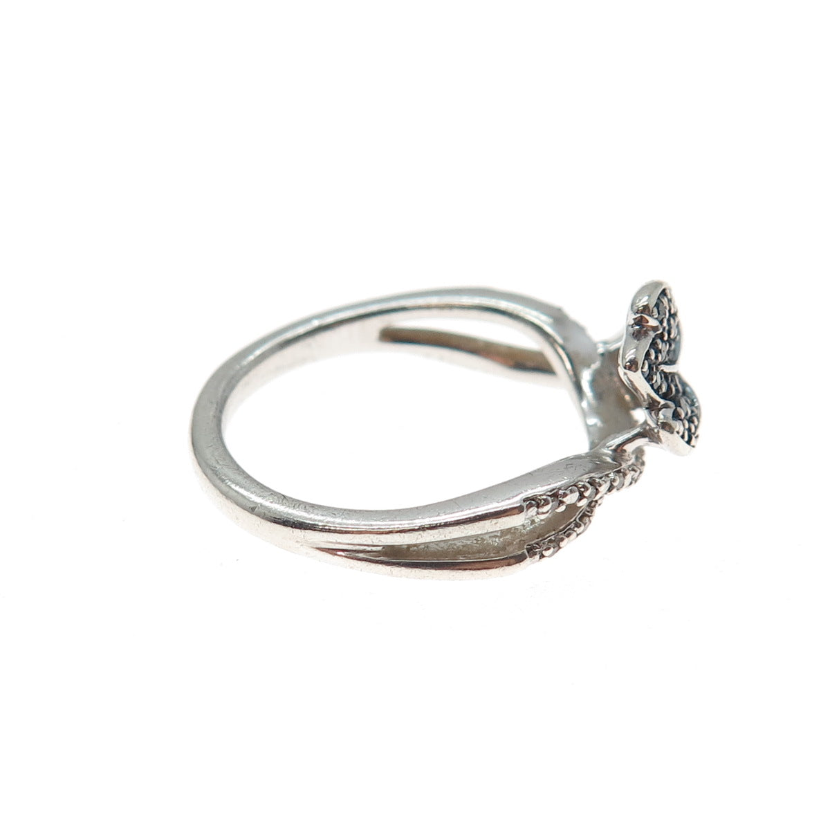925 Sterling Silver Real Round-Cut Blue & White Diamond Floral Leaf Ring Size 7