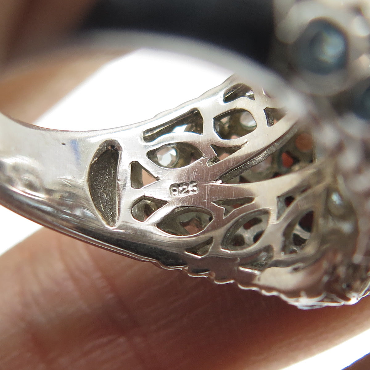 925 Sterling Silver Real Round-Cut Blue & White Topaz Ring Size 7