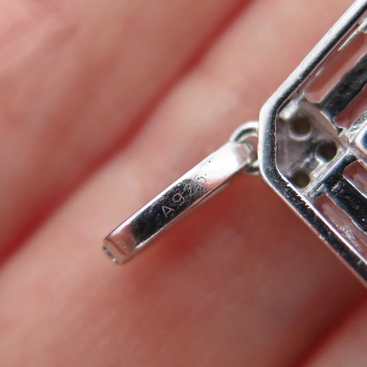 925 Sterling Silver Real Round-Cut Chrome Diopside & Baguette-Cut C Z Pendant