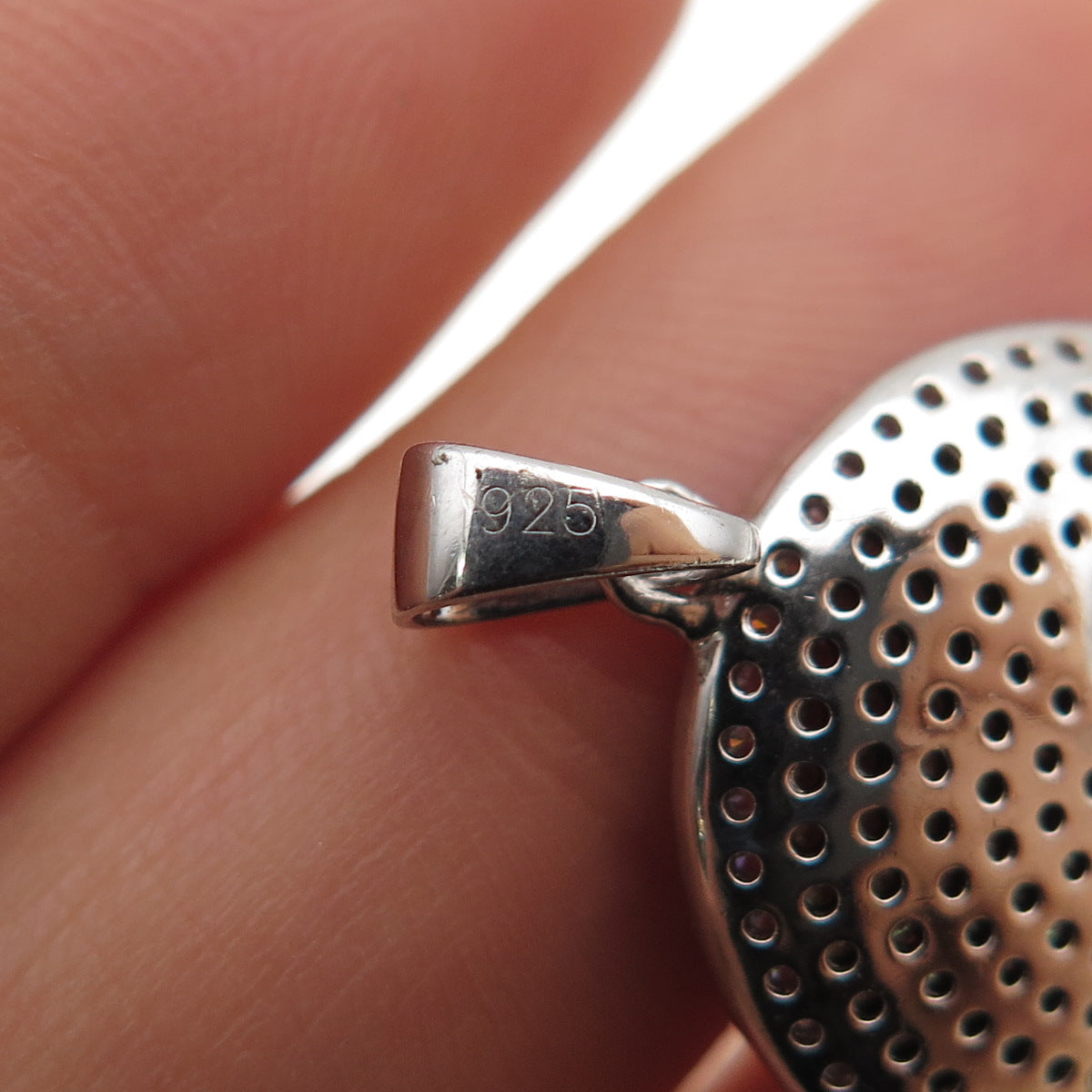 925 Sterling Silver Real Round-Cut Chrome Diopside & C Z Crescent Charm Pendant