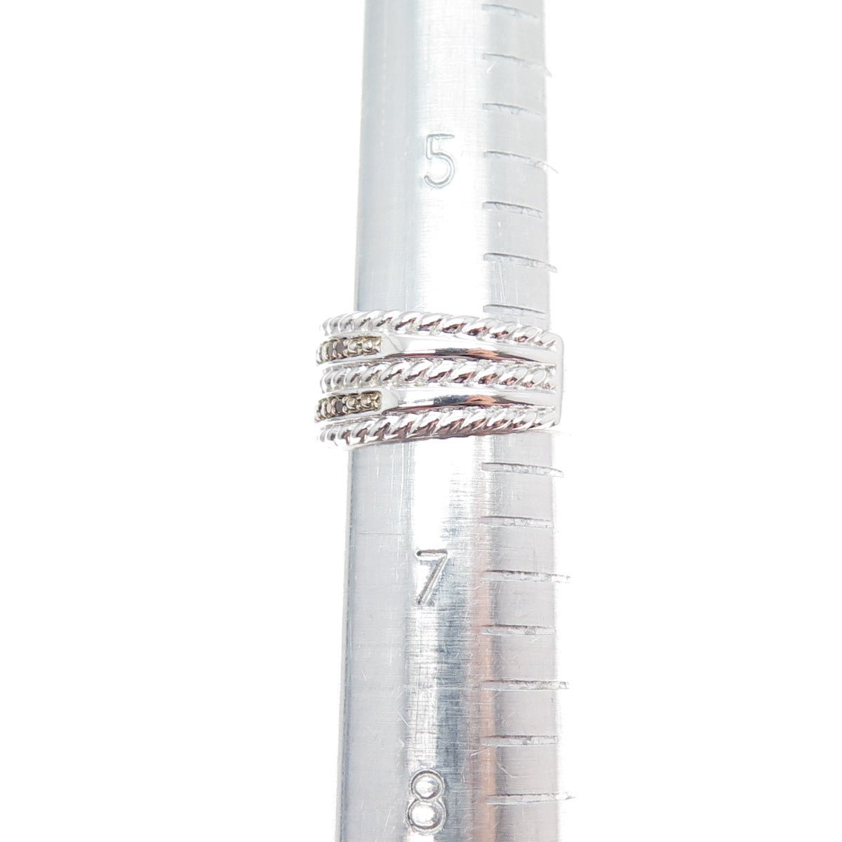 925 Sterling Silver Real Round-Cut Cognac Diamond Multi-Row Ring Size 6.25