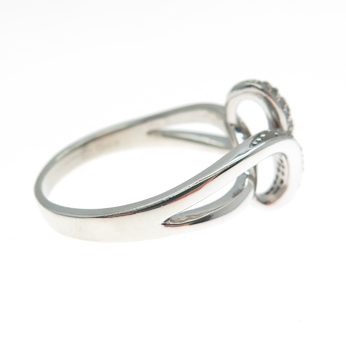 925 Sterling Silver Real Round-Cut Diamond Bypass Ring Size 8.25
