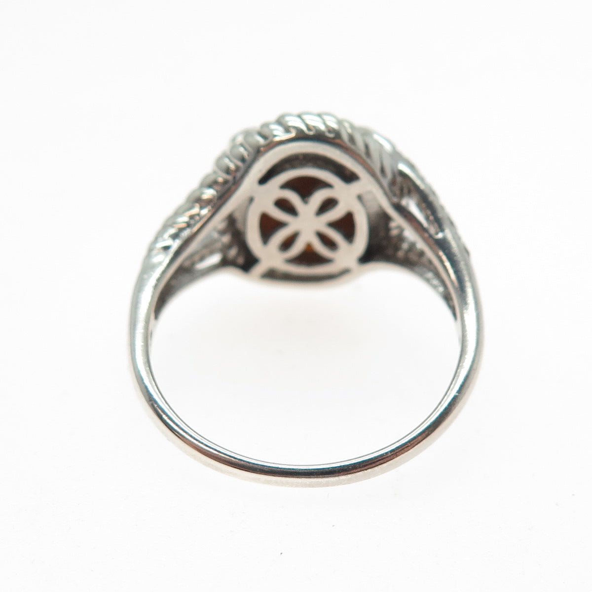 925 Sterling Silver Real Round-Cut Diamond & Cabochon Tiger Eye Ring Size 9