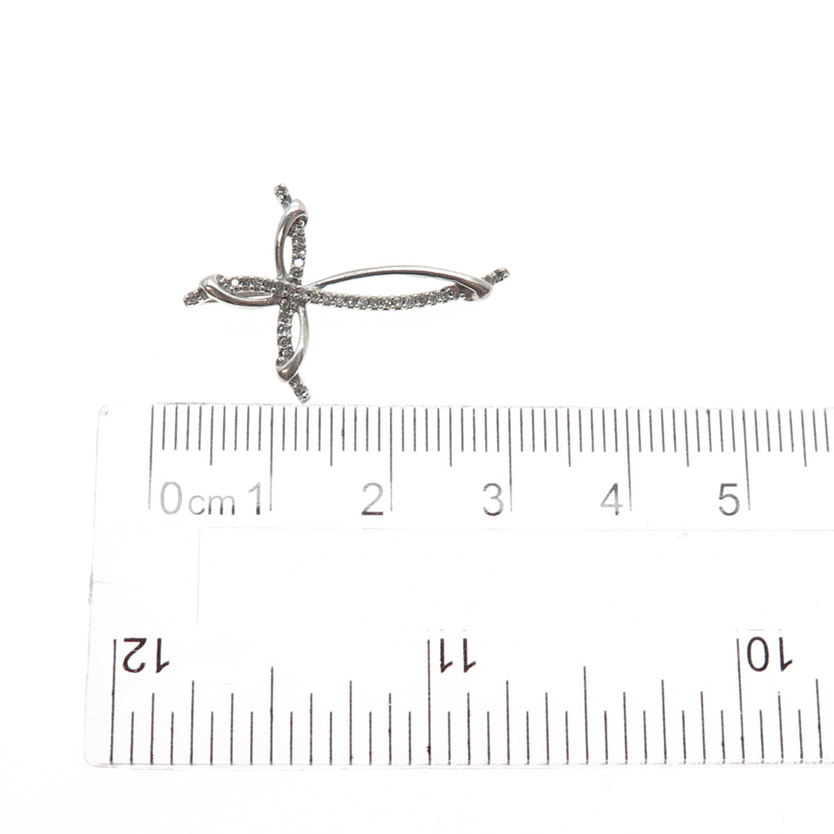 925 Sterling Silver Real Round-Cut Diamond Cross Slide Charm Pendant