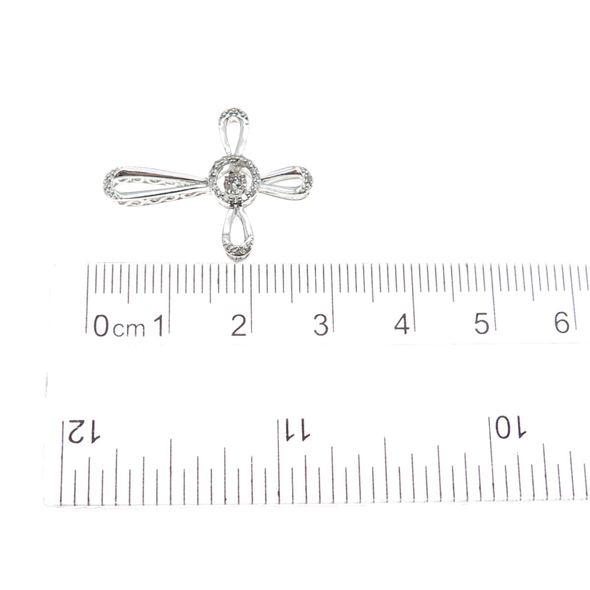 925 Sterling Silver Real Round-Cut Diamond Cross Slide Charm Pendant