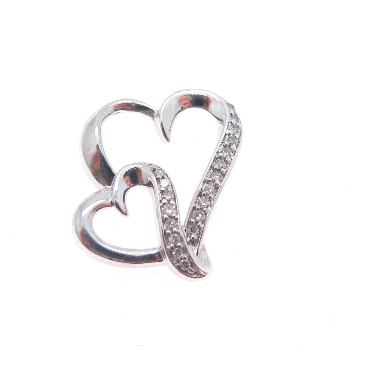 925 Sterling Silver Real Round-Cut Diamond Double Heart Mini Slide Charm Pendant