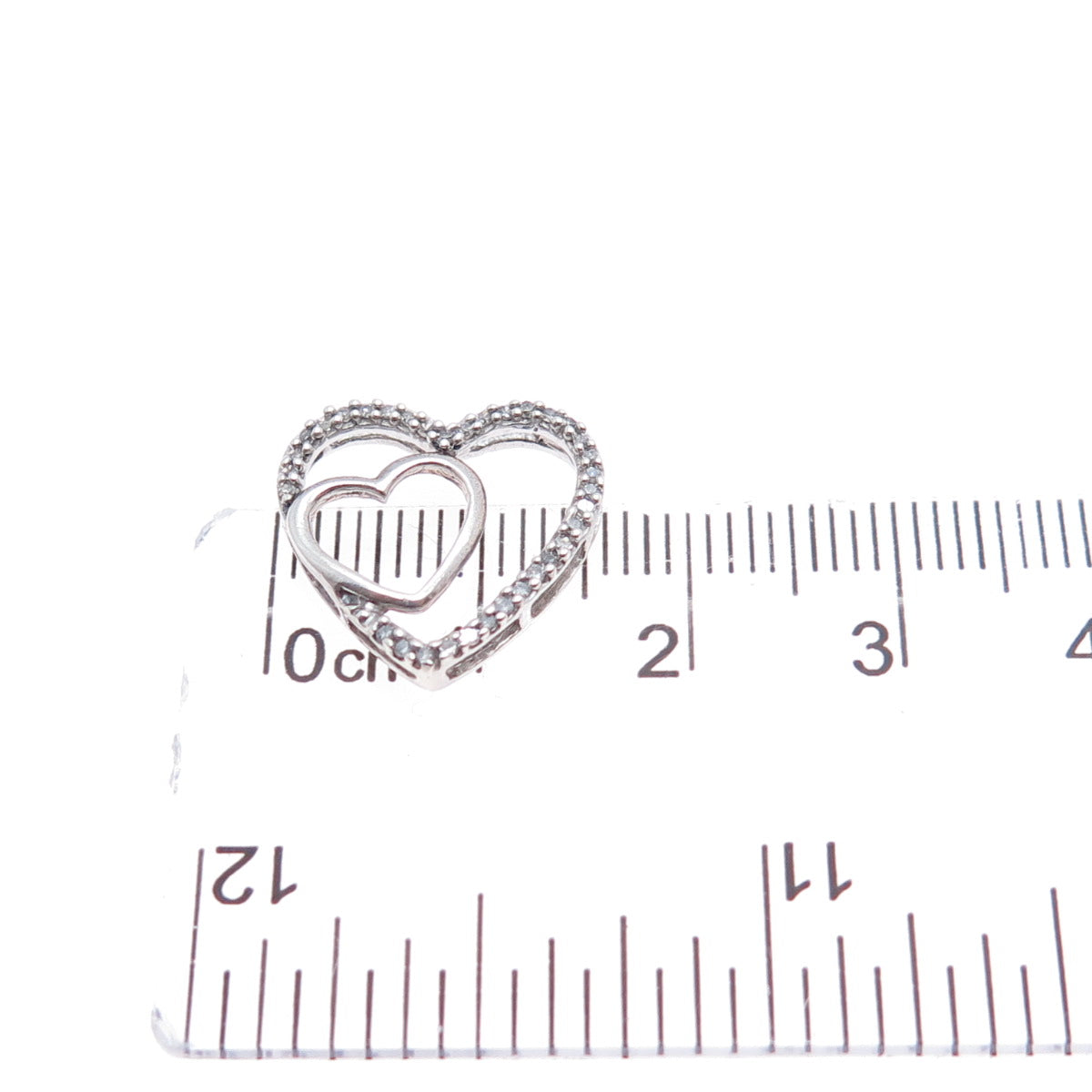 925 Sterling Silver Real Round-Cut Diamond Double Heart Mini Slide Pendant