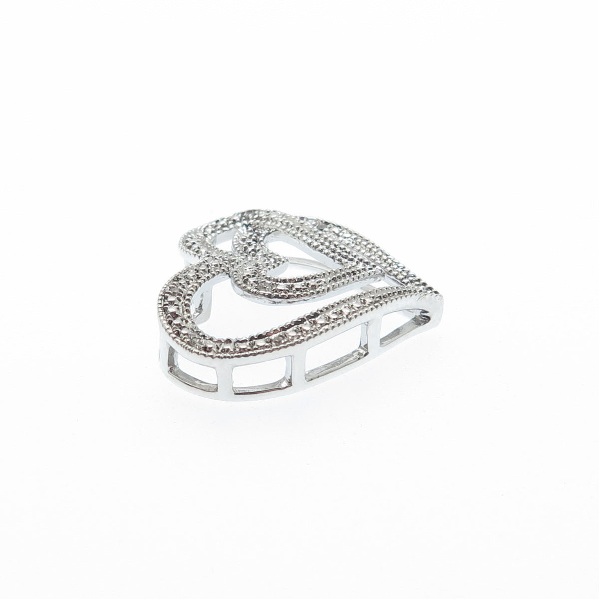925 Sterling Silver Real Round-Cut Diamond Double Heart Minimalist Slide Pendant