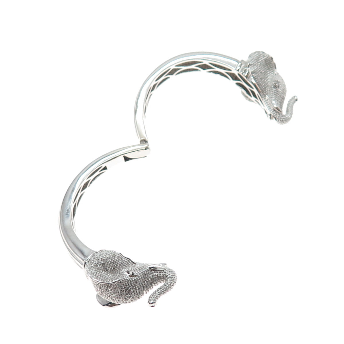 925 Sterling Silver Real Round-Cut Diamond Elephant Heavy 55.7g Bracelet 6.5"