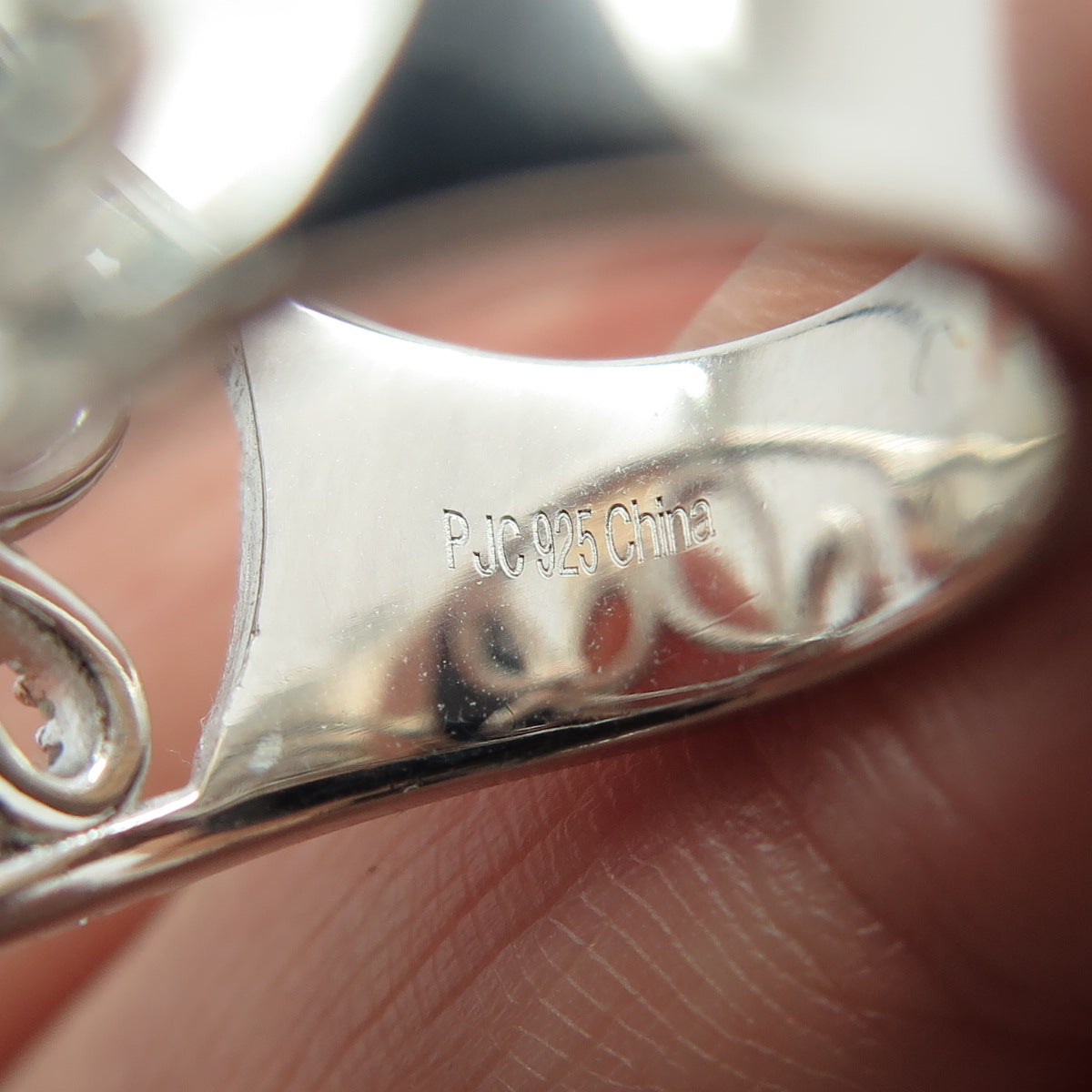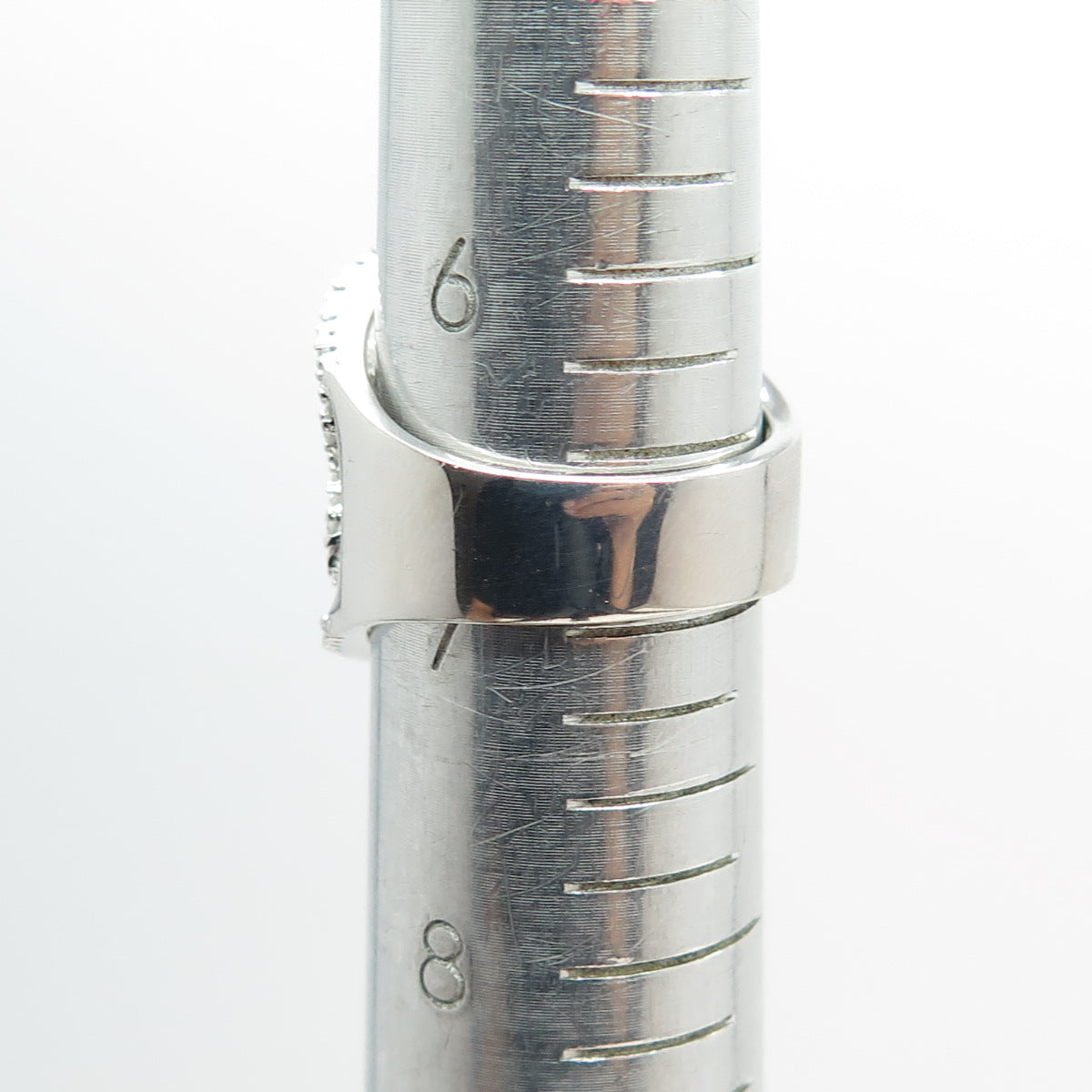925 Sterling Silver Real Round-Cut Diamond Floral Cross Ring Size 7