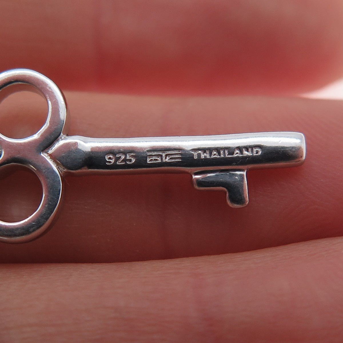 925 Sterling Silver Real Round-Cut Diamond Heart & Club Key Charm Pendant
