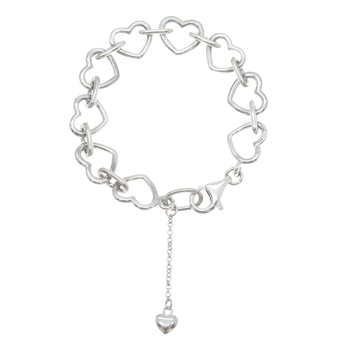 925 Sterling Silver Real Round-Cut Diamond Heart Link Bracelet 6.5"
