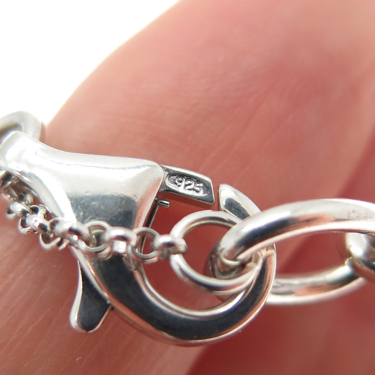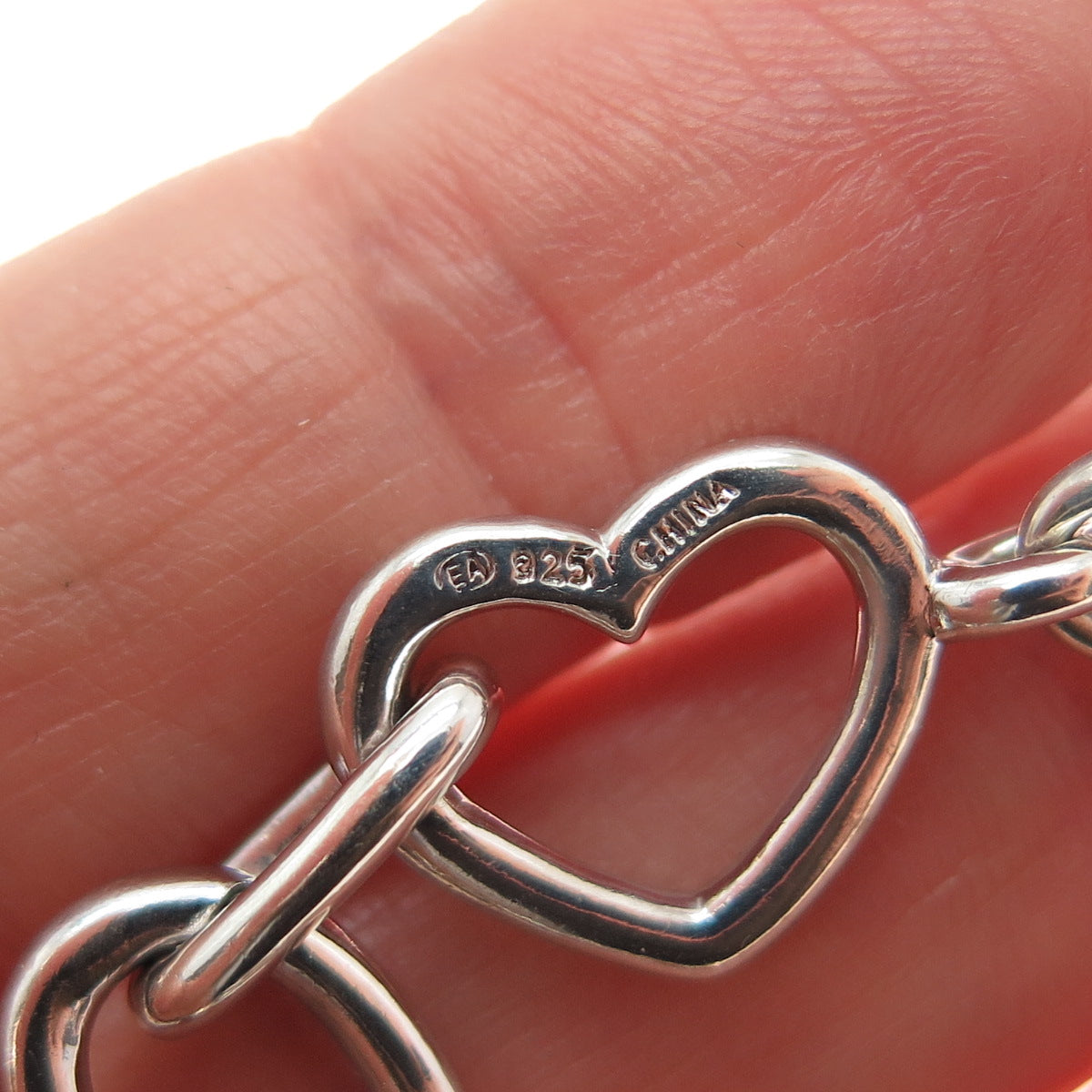 925 Sterling Silver Real Round-Cut Diamond Heart Link Bracelet 7.5"