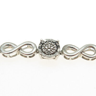 925 Sterling Silver Real Round-Cut Diamond Infinity Link Bracelet 7-8"
