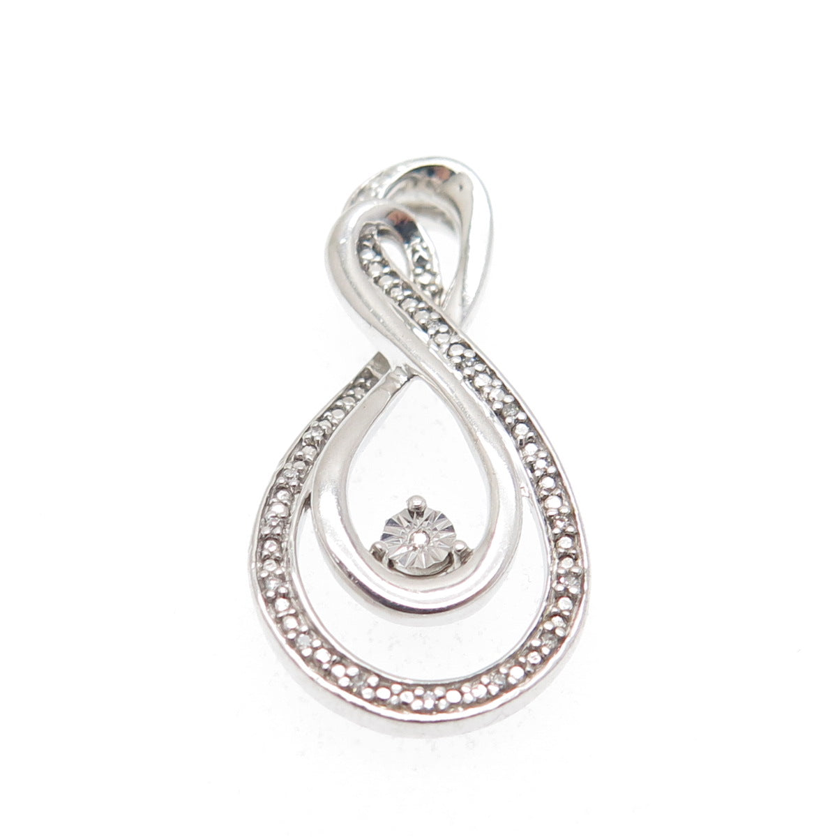 925 Sterling Silver Real Round-Cut Diamond Infinity Slide Pendant