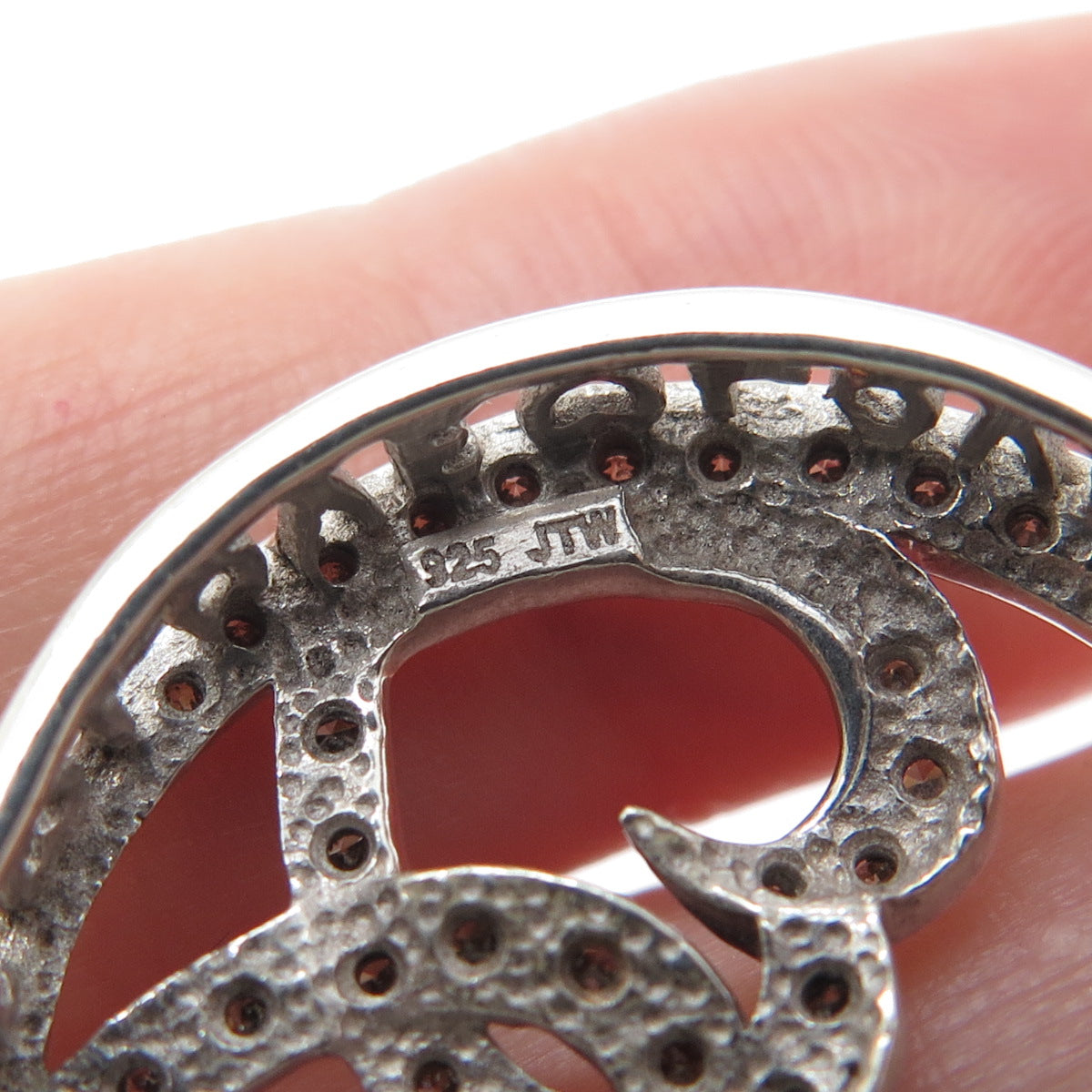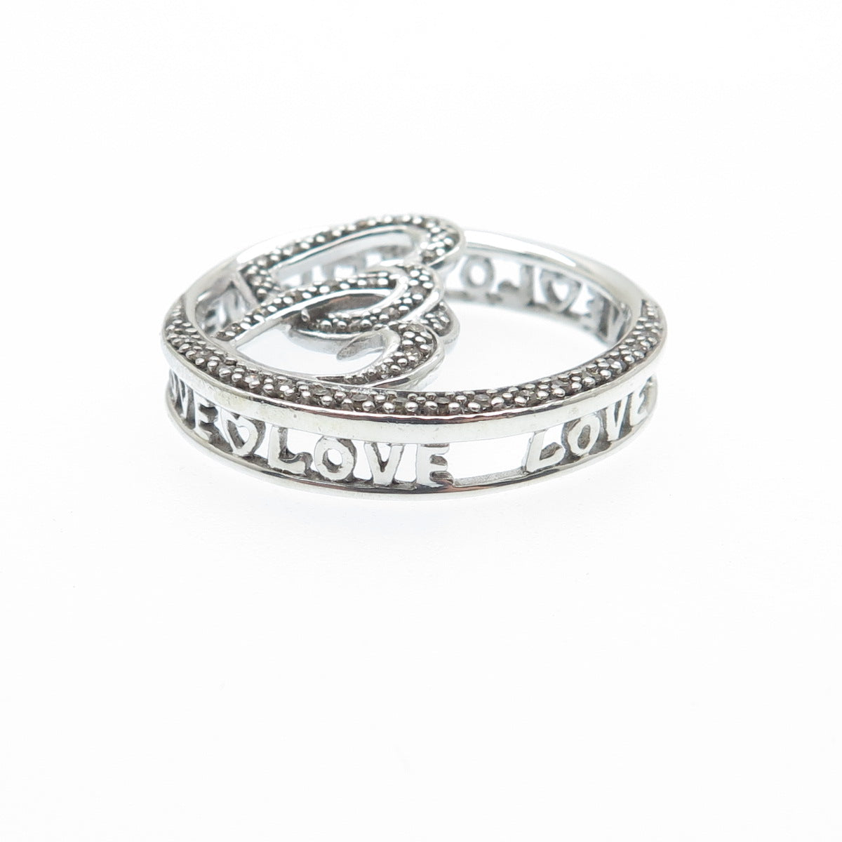 925 Sterling Silver Real Round-Cut Diamond Interlocked Heart Slide Pendant