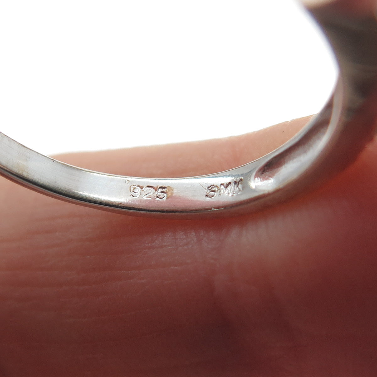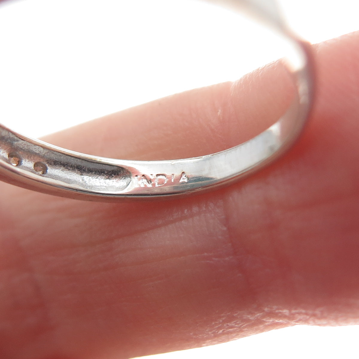 925 Sterling Silver Real Round-Cut Diamond & Oval-Cut Emerald Ring Size 7.75