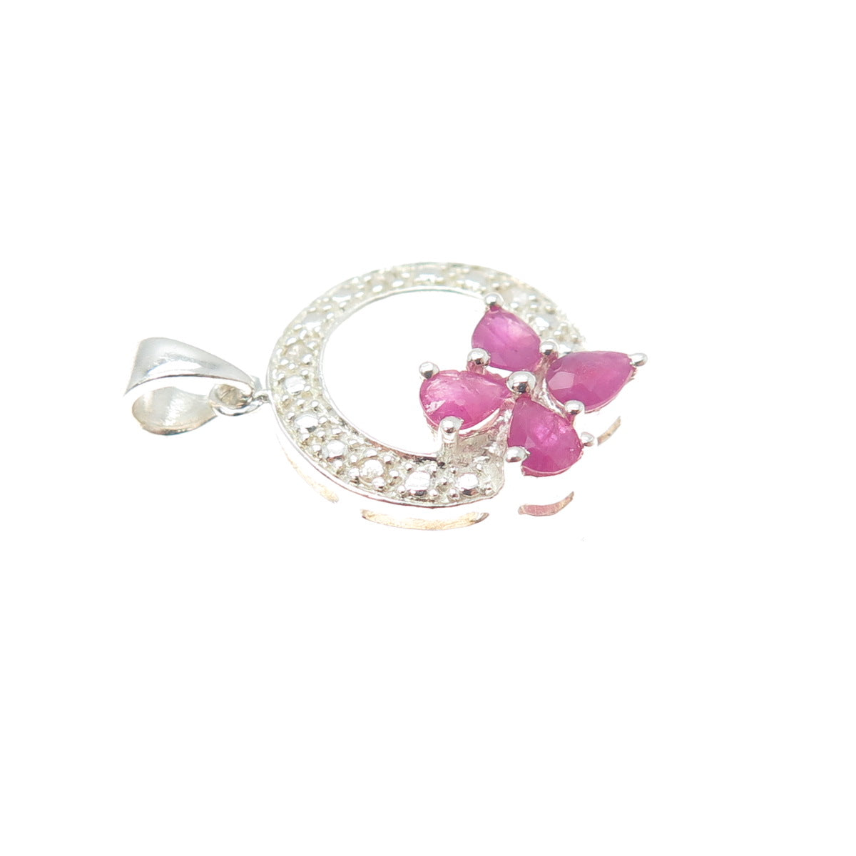 925 Sterling Silver Real Round-Cut Diamond & Pear-Cut Ruby Minimalist Pendant