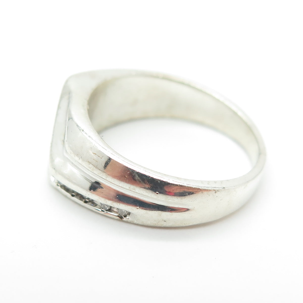 925 Sterling Silver Real Round-Cut Diamond Ring Size 6.75