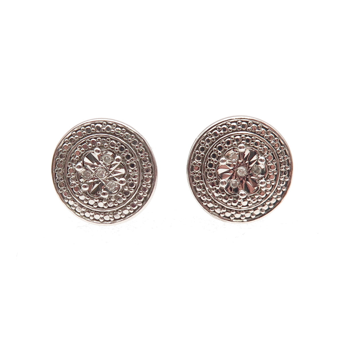 925 Sterling Silver Real Round-Cut Diamond Stud Earrings