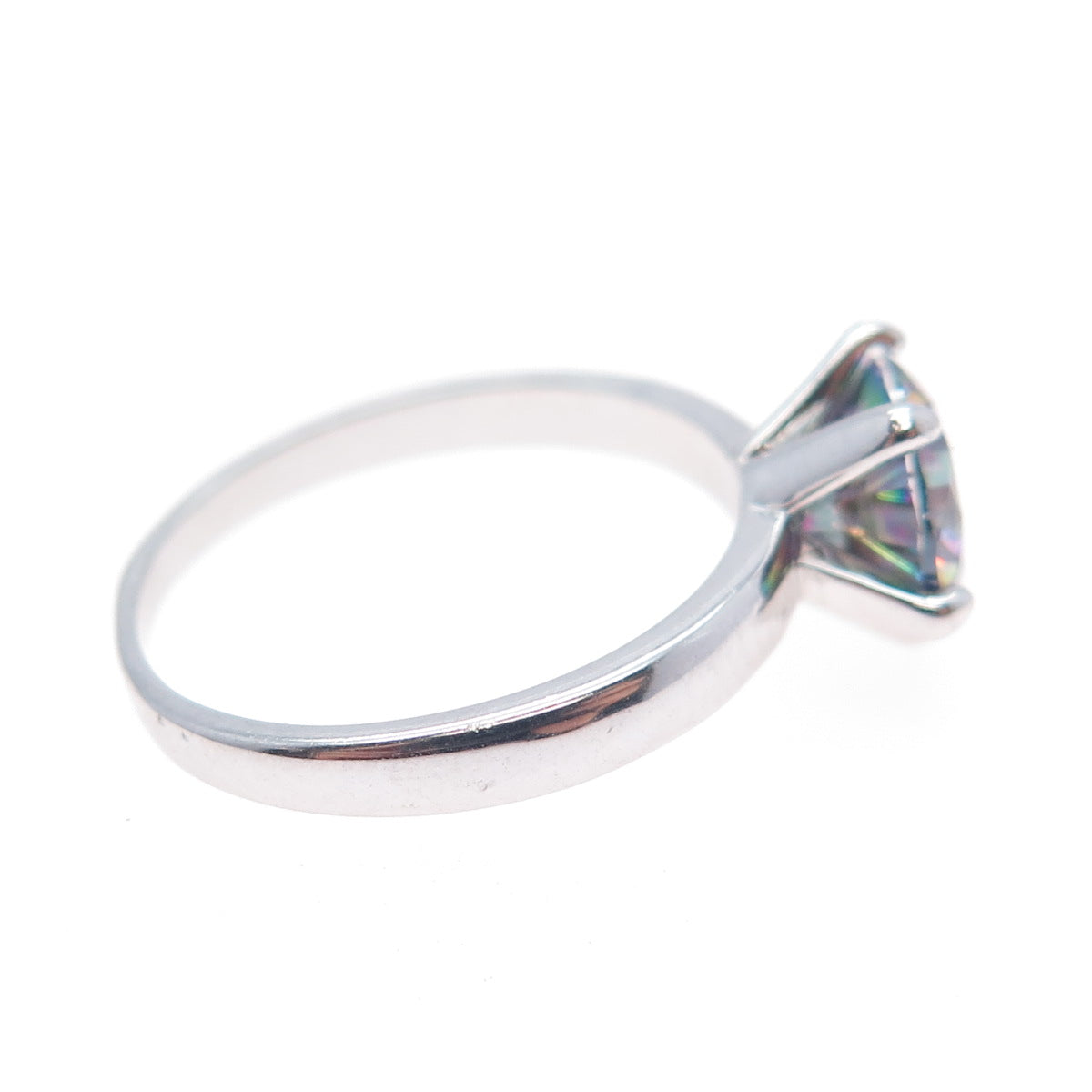 925 Sterling Silver Real Round-Cut Mystic Quartz Ring Size 7