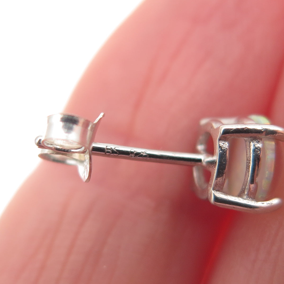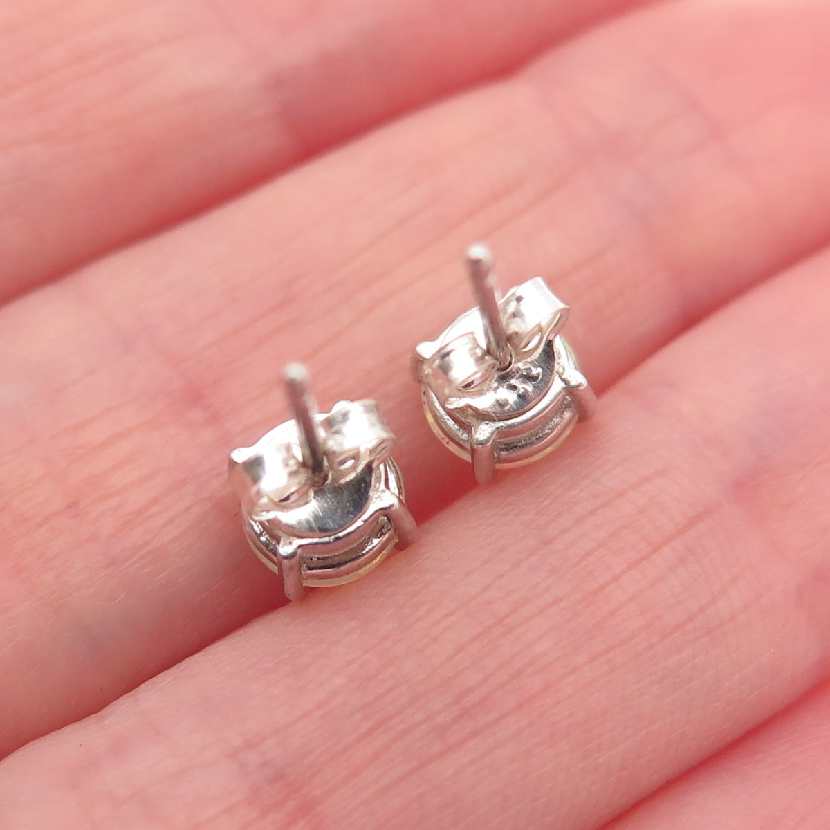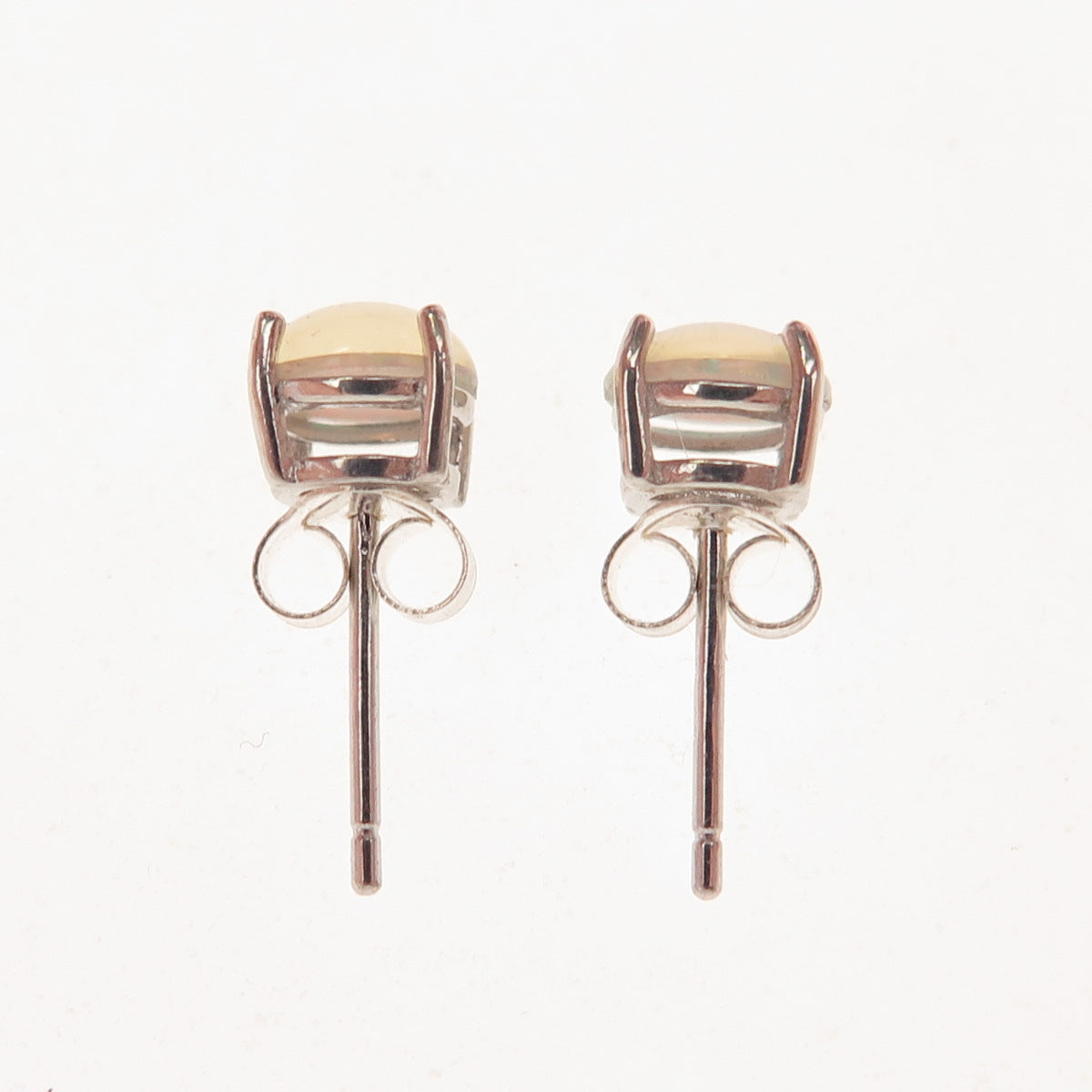 925 Sterling Silver Real Round-Cut Opal Stud Earrings