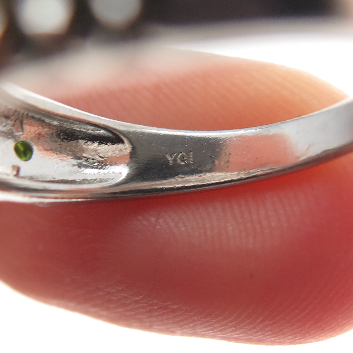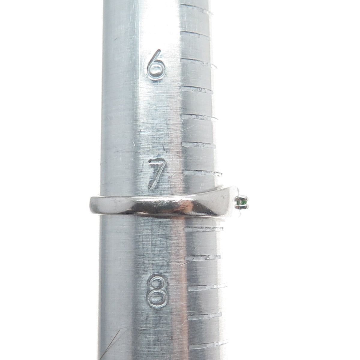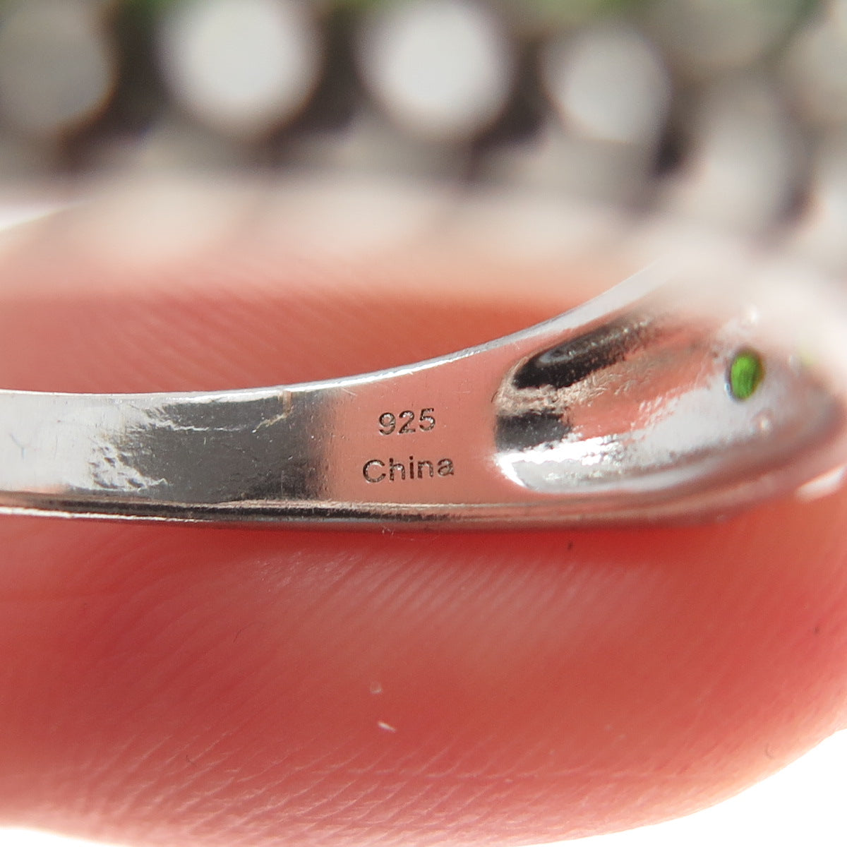 925 Sterling Silver Real Round-Cut Peridot Beaded Ring Size 7.5
