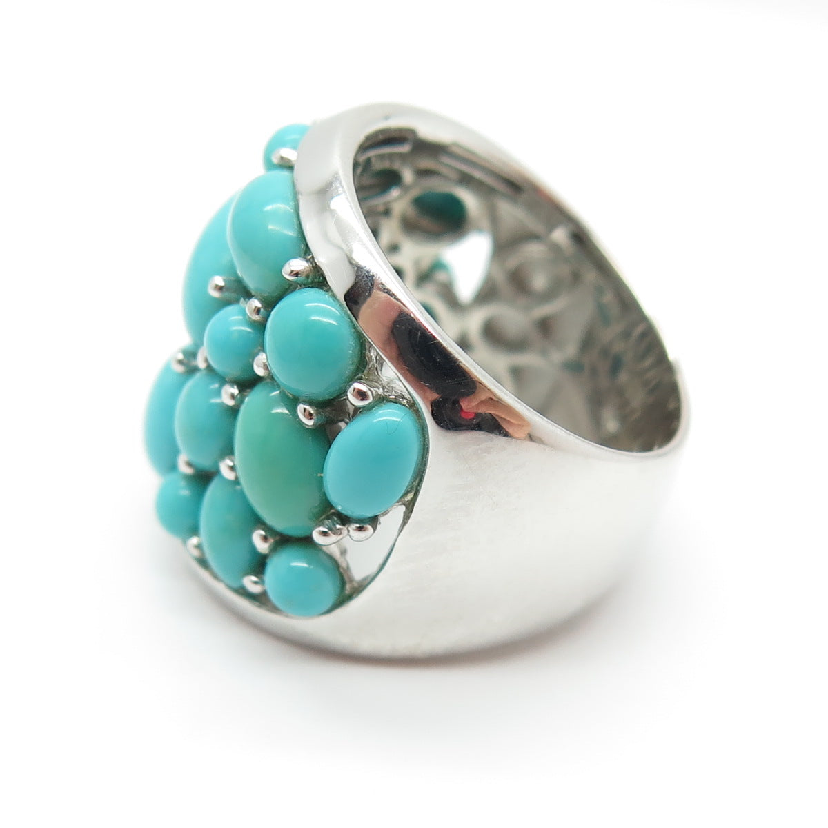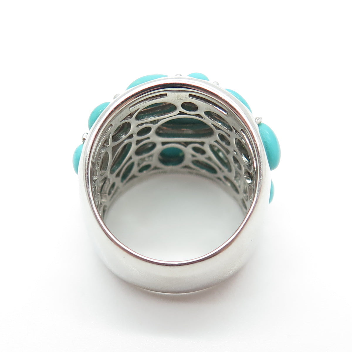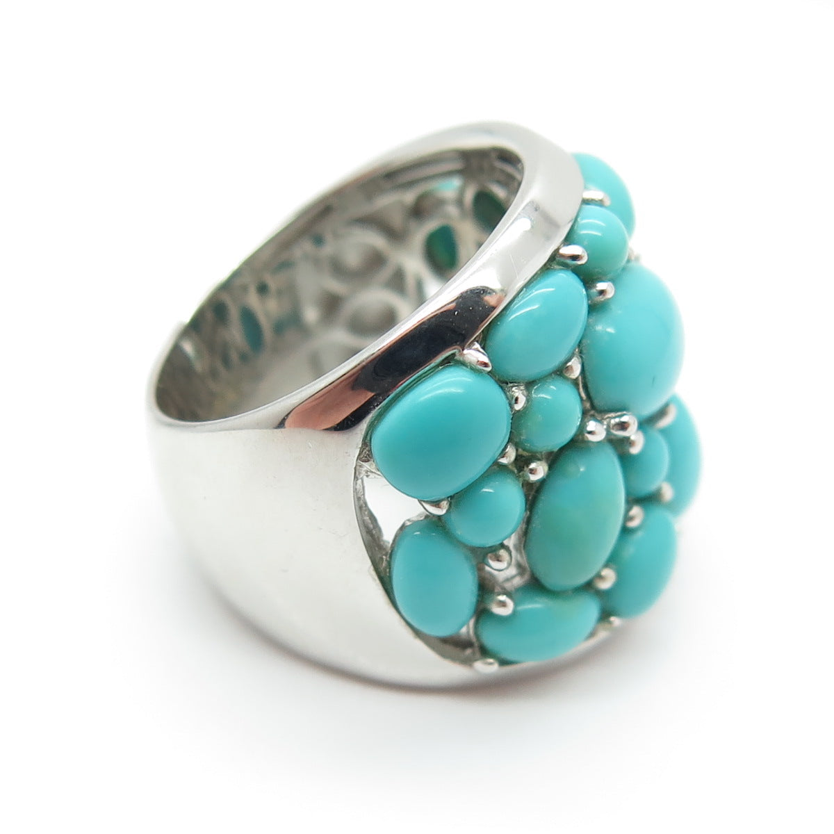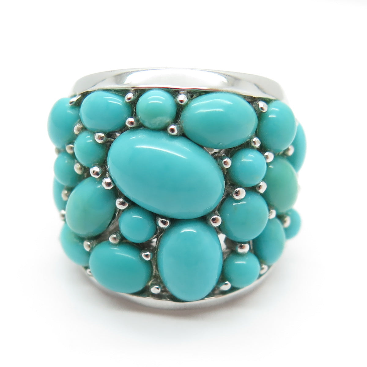 925 Sterling Silver Real Sleeping Beauty Turquoise Cluster Ring Size 5
