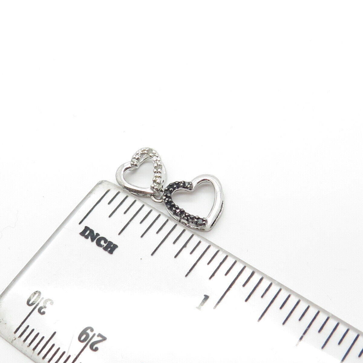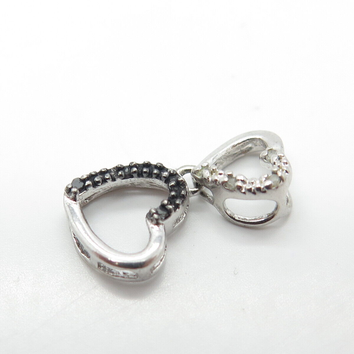 925 Sterling Silver Real White & Black Diamond Loving Open Heart Pendant
